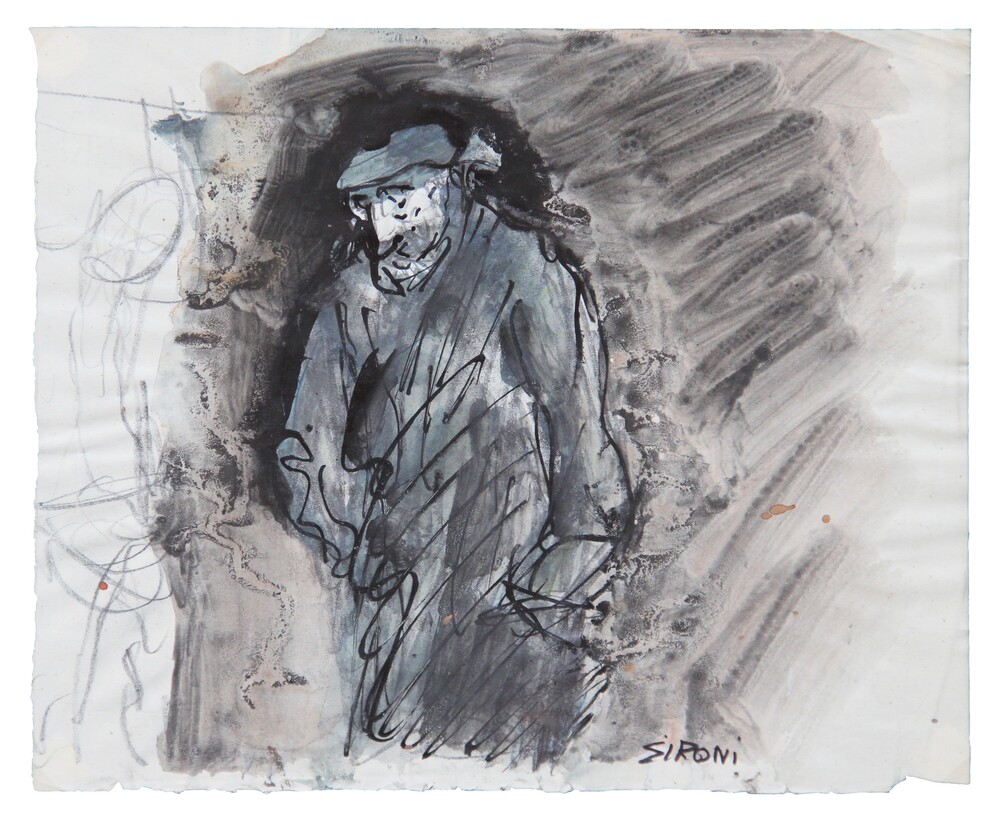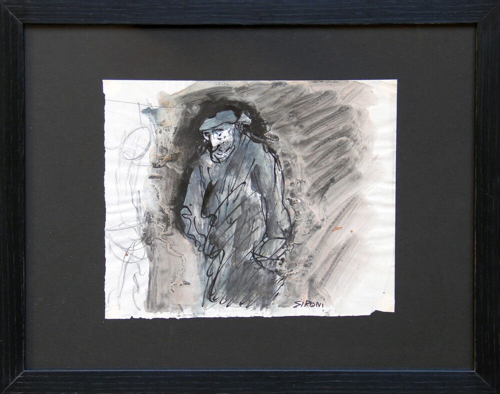 SIRONI Mario, Figura, 1957 ca., tempera tempera diluita matita grassa e china su carta, cm 24,2x29,3