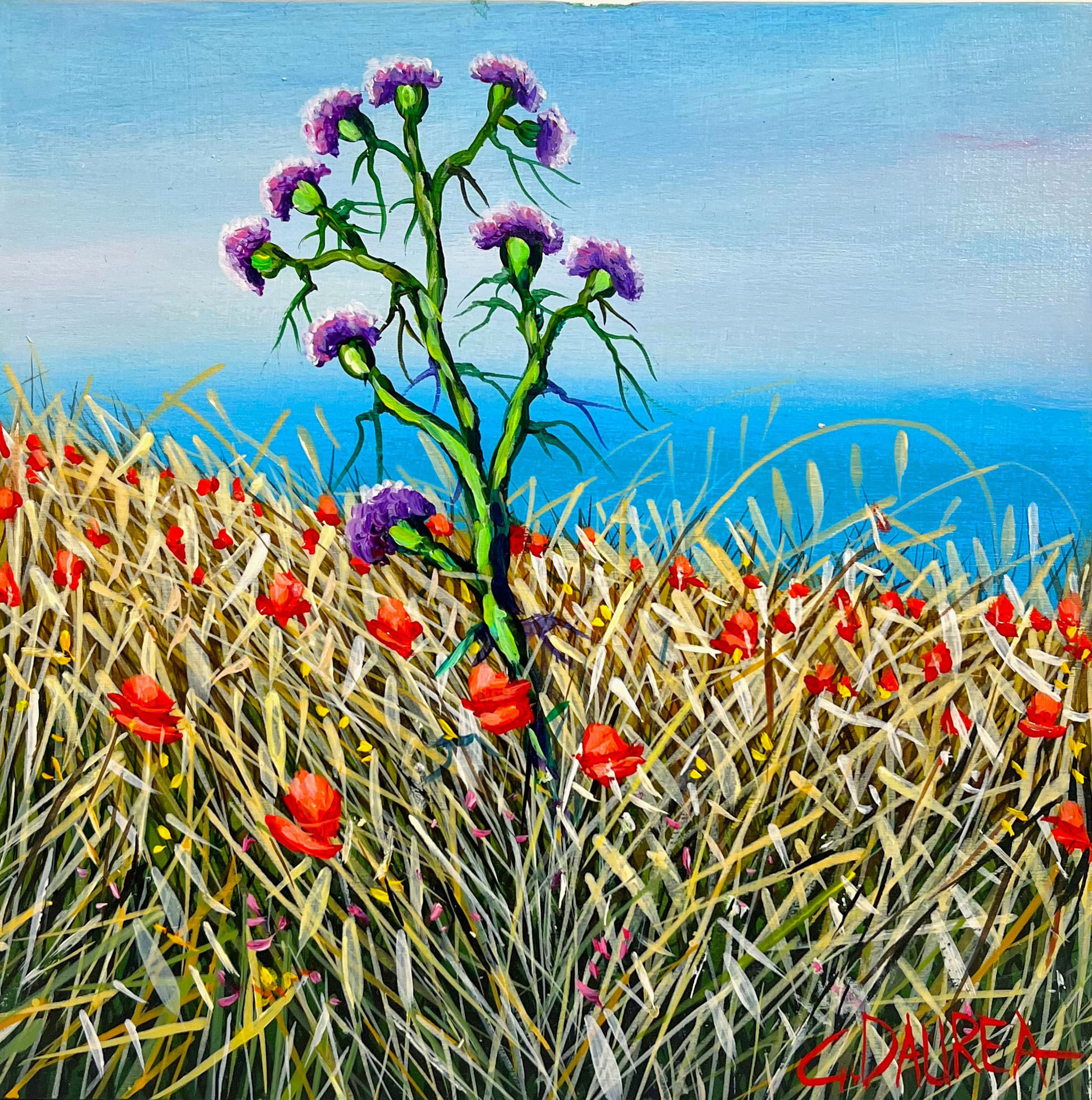 DAUREA GIOVANNI Caltanissetta 1955 "Estate" Olio su tavola cm 20x20. Firmato sul fronte in basso a destra. Al verso etichetta descrittiva con numero d'archivio. Autentica su foto a cura del Maestro.