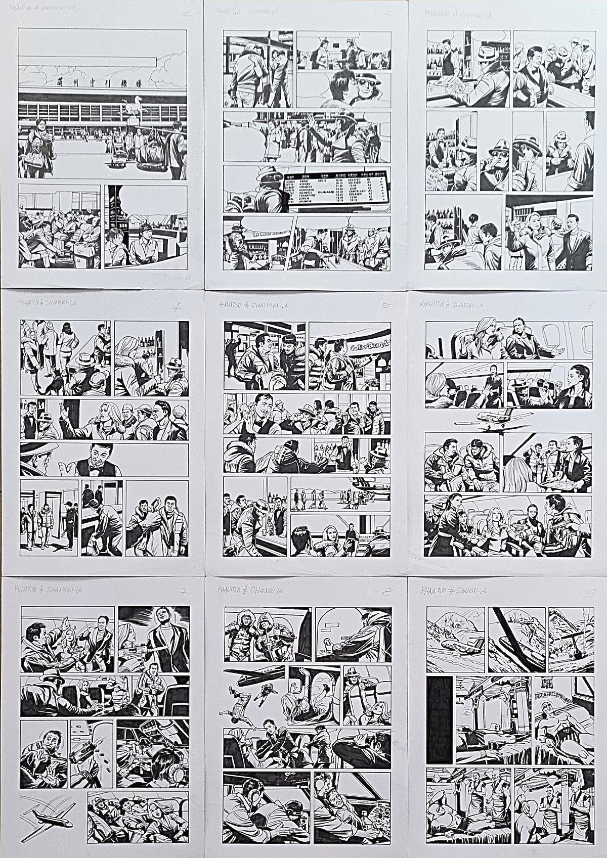 TODARO ANGELO Taranto 1945 - 2025 "Phantom's world Special n° 4" China su n. 32 tavole originali utilizzate per la realizzazione dell'episodio "Shangri-La", prive di scrittura e facenti parte del fumetto originale a corredo. Realizzate tra il 2017-2018, con note a matita dell'Artista, non firmate.