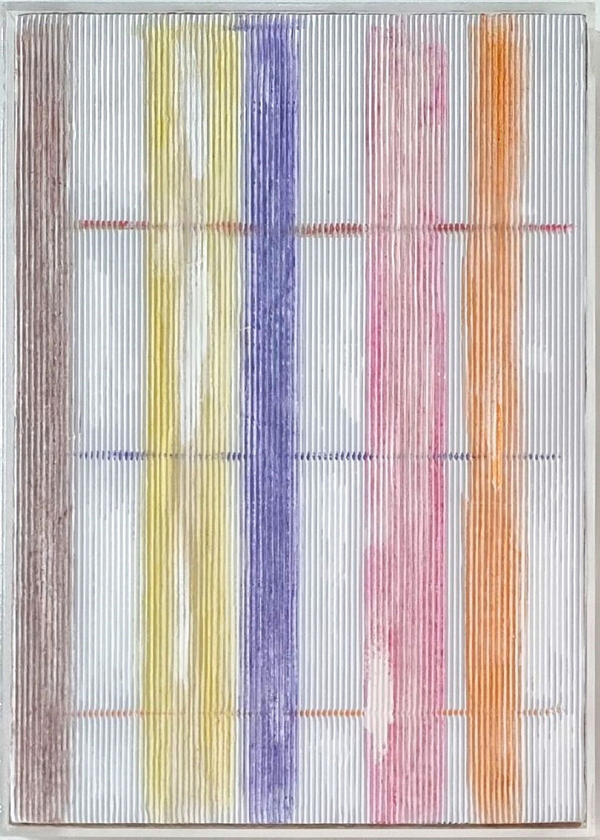MASI PAOLO Firenze 1933 "Senza titolo" Tecnica mista su cartone cm 35x50 del 2000. Firmata e datata al retro. Opera contenuta in teca di plexiglass. Autentica su foto a cura del Maestro.