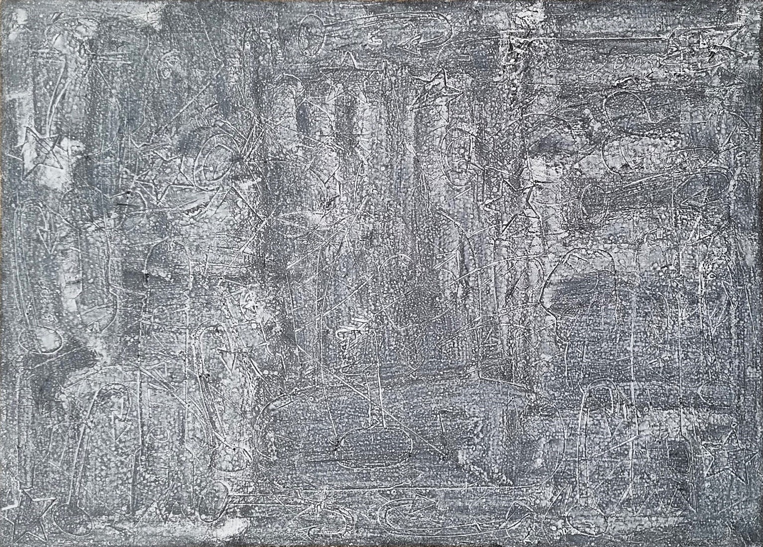 H.H. LIM Malaysia 1954 "Senza titolo" Acrilici e graffiti su tela cm 110x80. Firmata al verso.