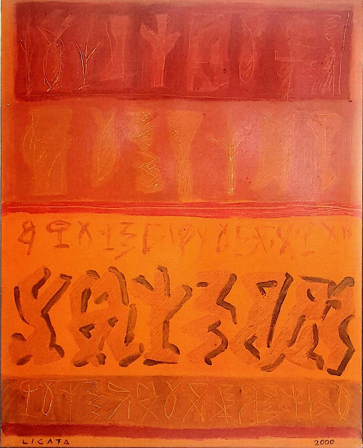 LICATA RICCARDO Torino 1929 - Venezia 2014 "Composizione" Olio su tela cm 46x55 del 2000. Firmato sul fronte in basso a sinistra, datato a destra. Autentica su foto a cura di Dante Vecchiato, archivio su foto.