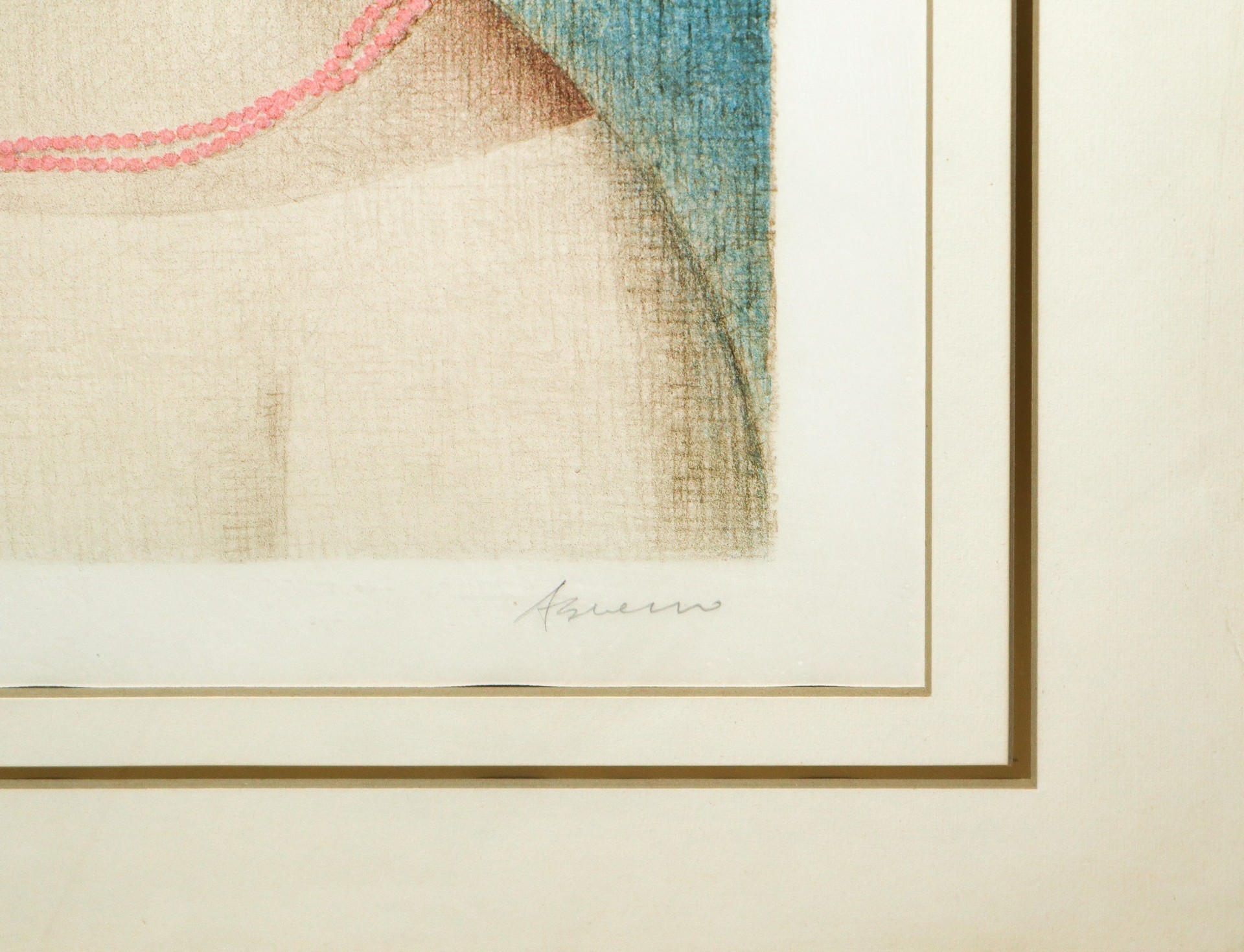 Antonio Bueno (berlino 1918 - Firenze 1984) - Donna con collana rosa h cm 65X50 in cornice h cm 88X75 Prova d'Autore litografia