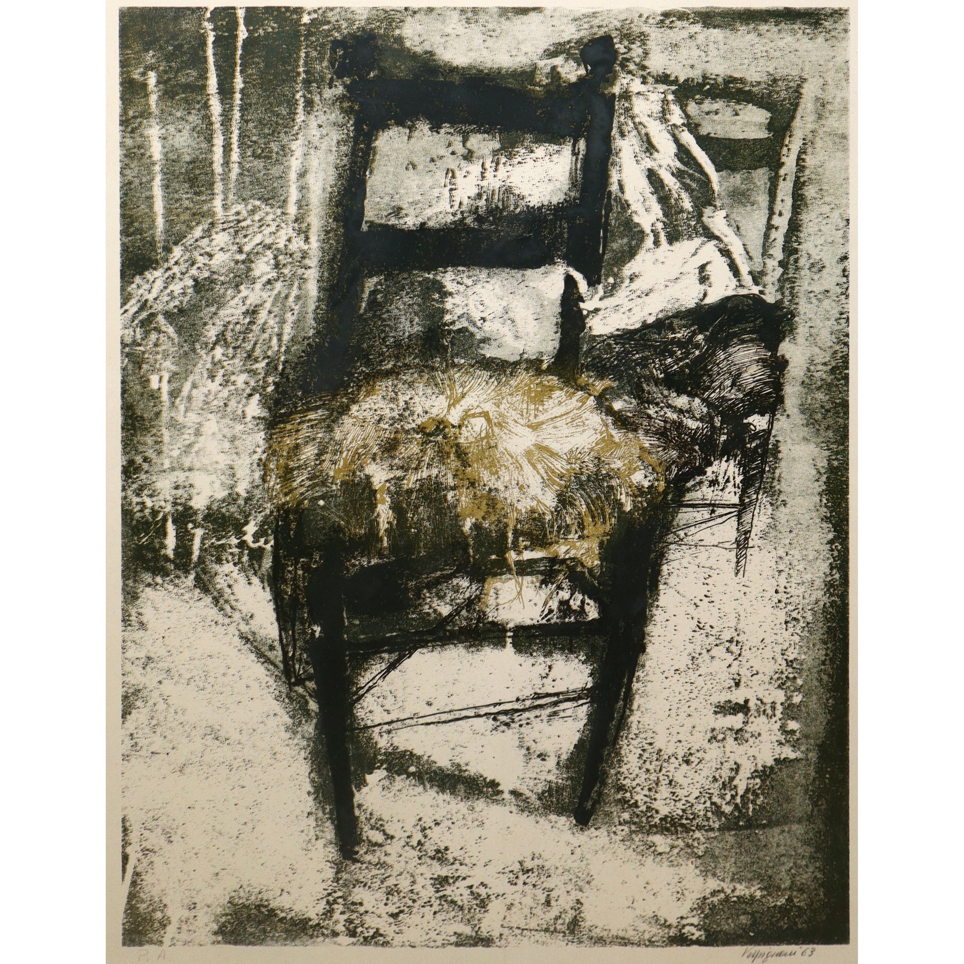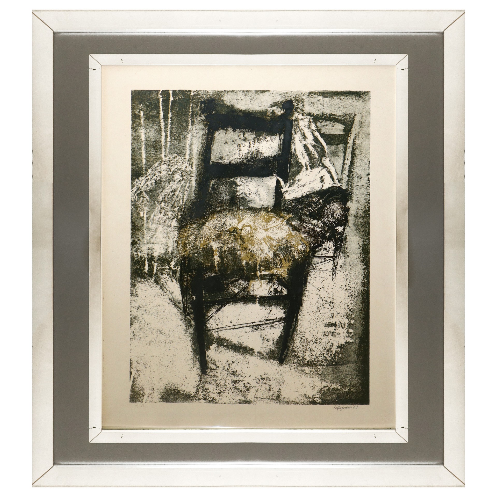 Renzo Vespignani (Italia 1924 - 2001) - Sedia, h cm 70X50 in cornice h cm 93X73 Prova d'Autore litografia