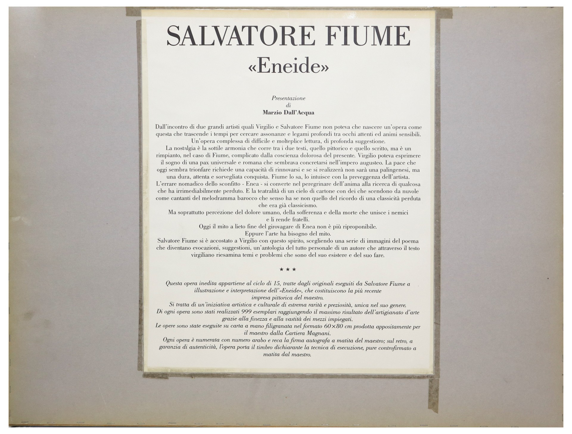 Salvatore Fiume (Comiso 1915 - Milano 1997) - Eneide 721/999 cm 60x80 carta filigranata