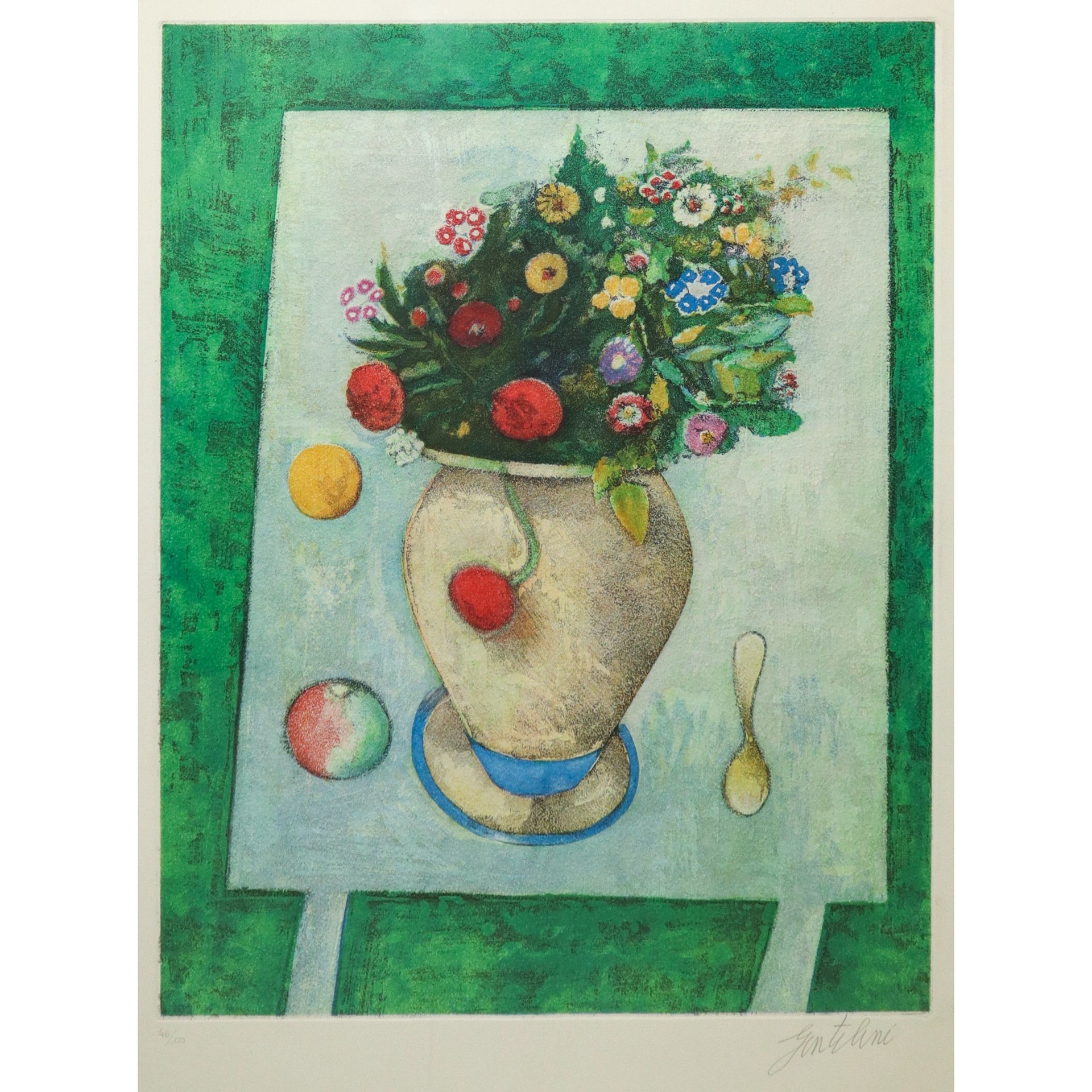 Aldo Gentilini (Genova 7 febbraio 1911 - Volpeglino 10 agosto 1982) - Vaso di fiori h cm 93X72 Litografia a colori