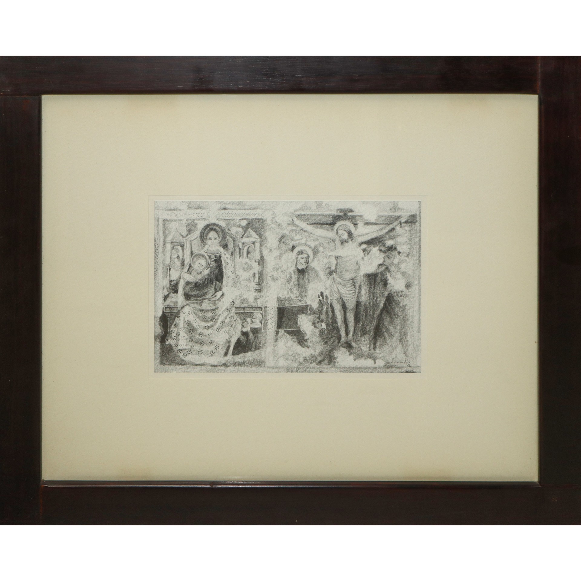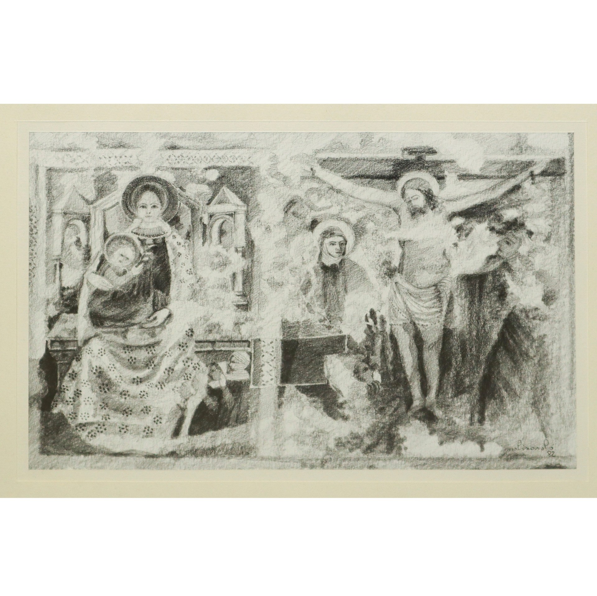 Renato Molinarolo - Madonna in trono e Crocifissione, 1982 H cm 19x28,5 - in cornice H cm 52x62 litografia
