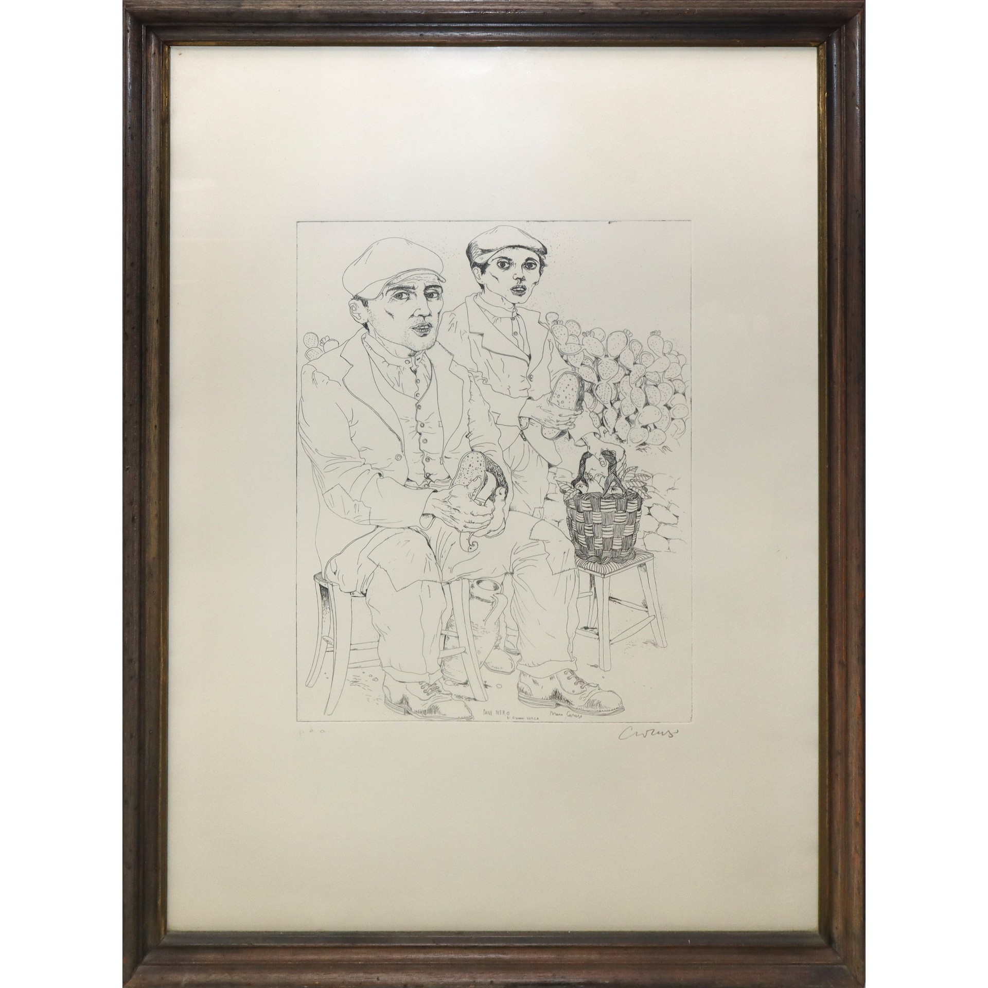 Bruno Caruso (Palermo 1927 - Roma 2018) - Pane nero di Giovanni Verga in cornice cm 77x57 Grafica