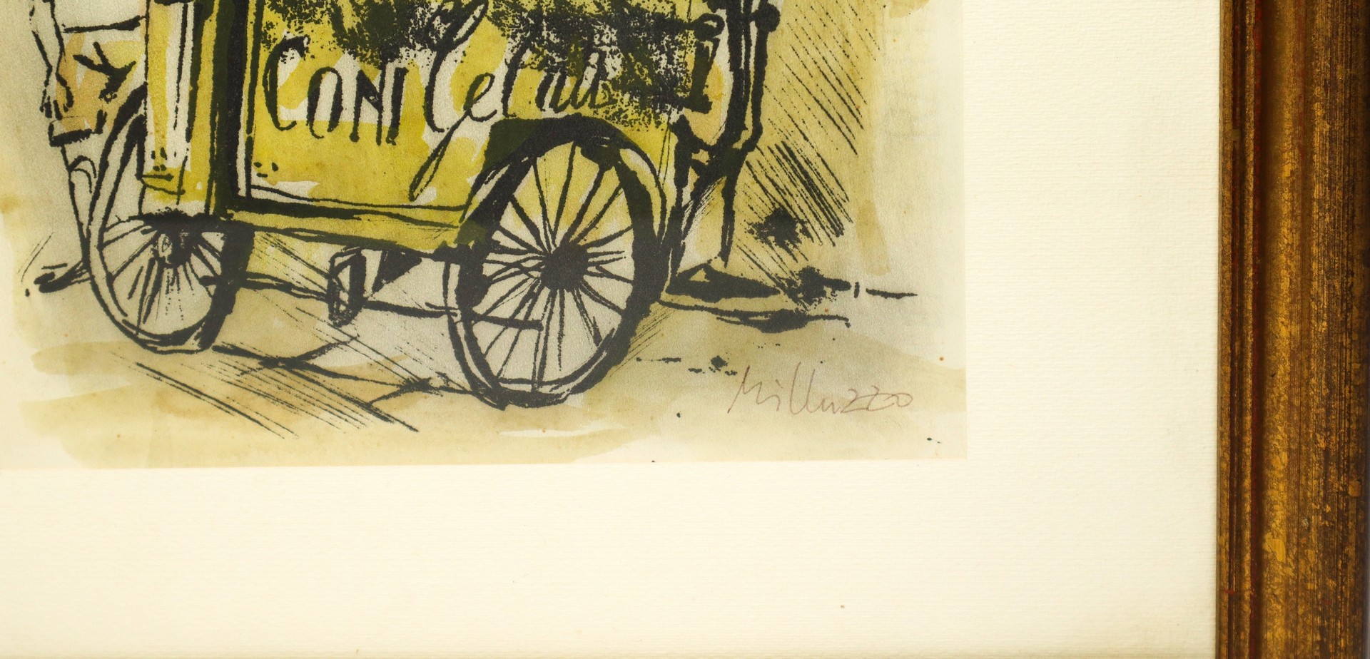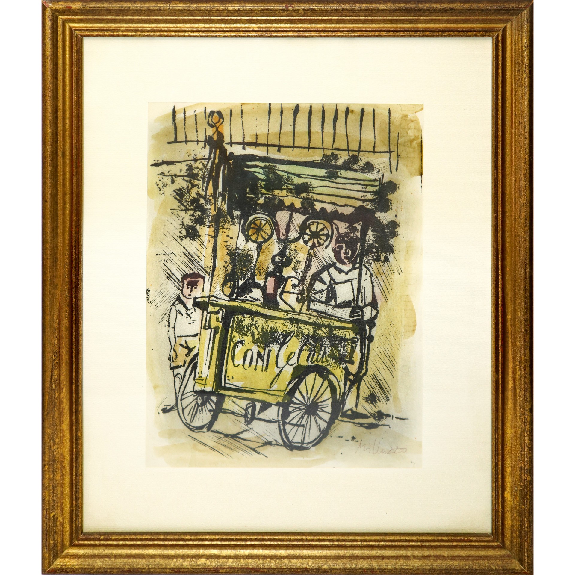 Sebastiano Milluzzo (Catania 1915 - Catania 2011) - "Carretto" dei gelati h cm 31X22 in cornice h cm 49X29 litografia