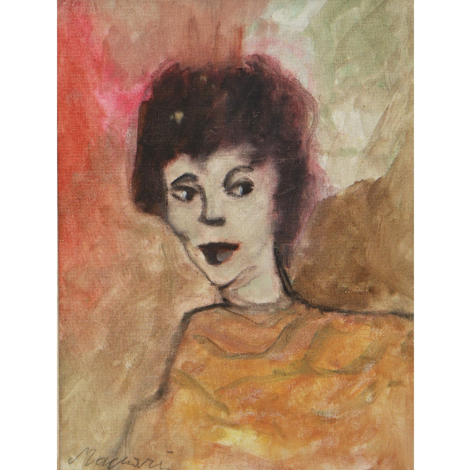 Mino Maccari (Siena 1898 - Roma 1989) - Figura, 1960s H cm 24x18 - in cornice H cm 41x35 Olio su cartone telato