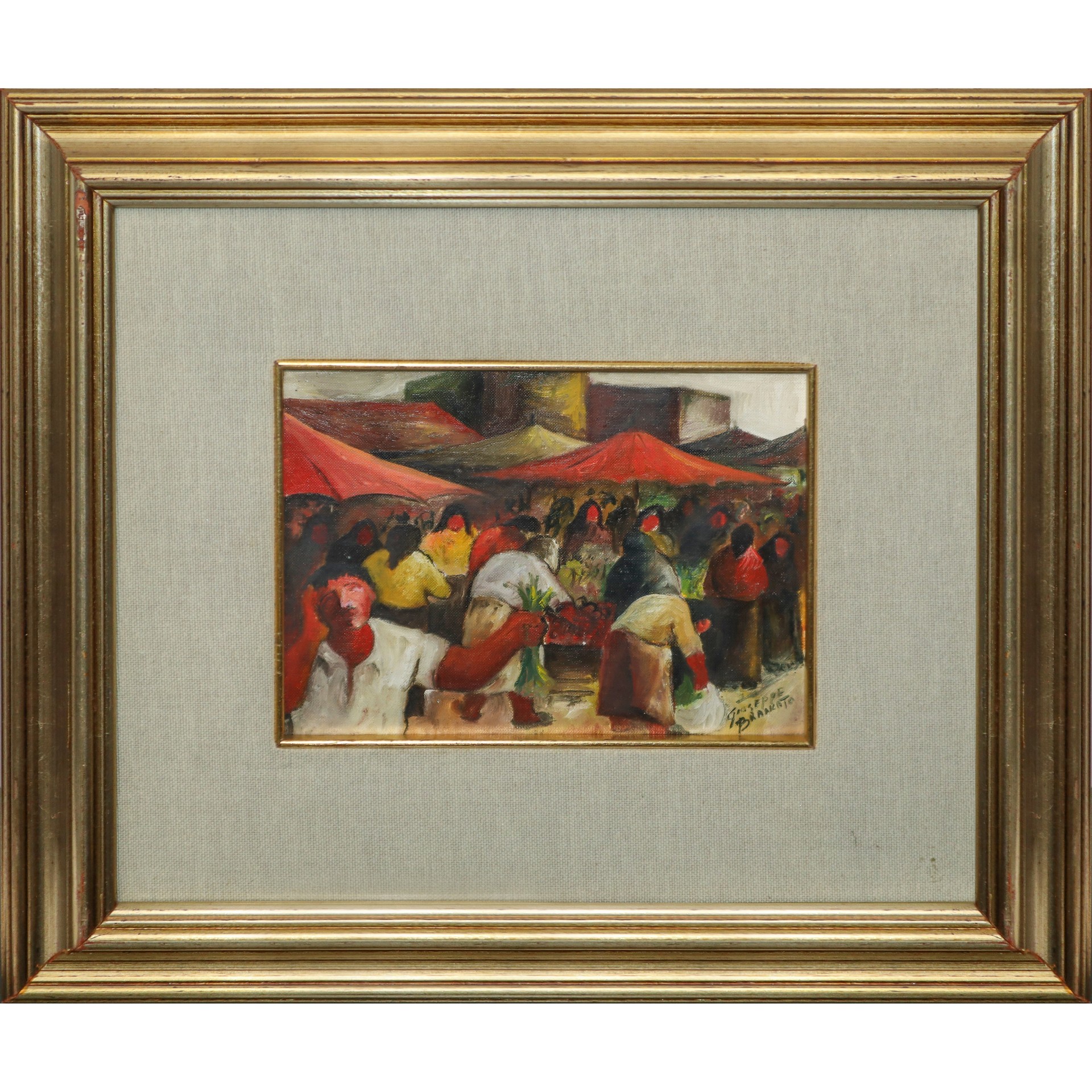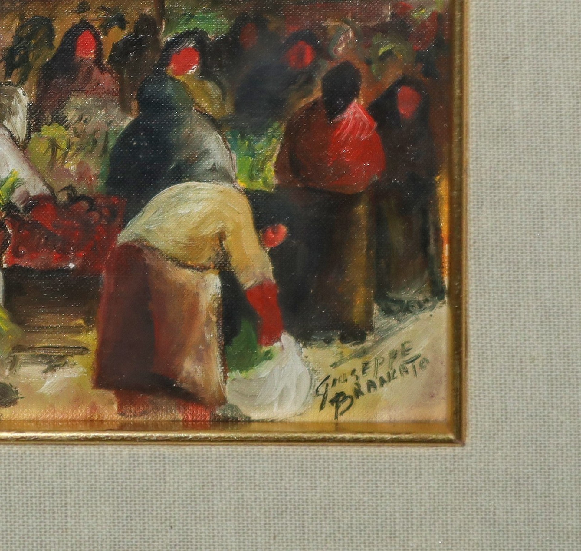 Giuseppe Brancato (Messina 1945) - Donne al mercato h cm 14X20 in cornice 36X41 Firmato in basso a destra Giuseppe Brancato