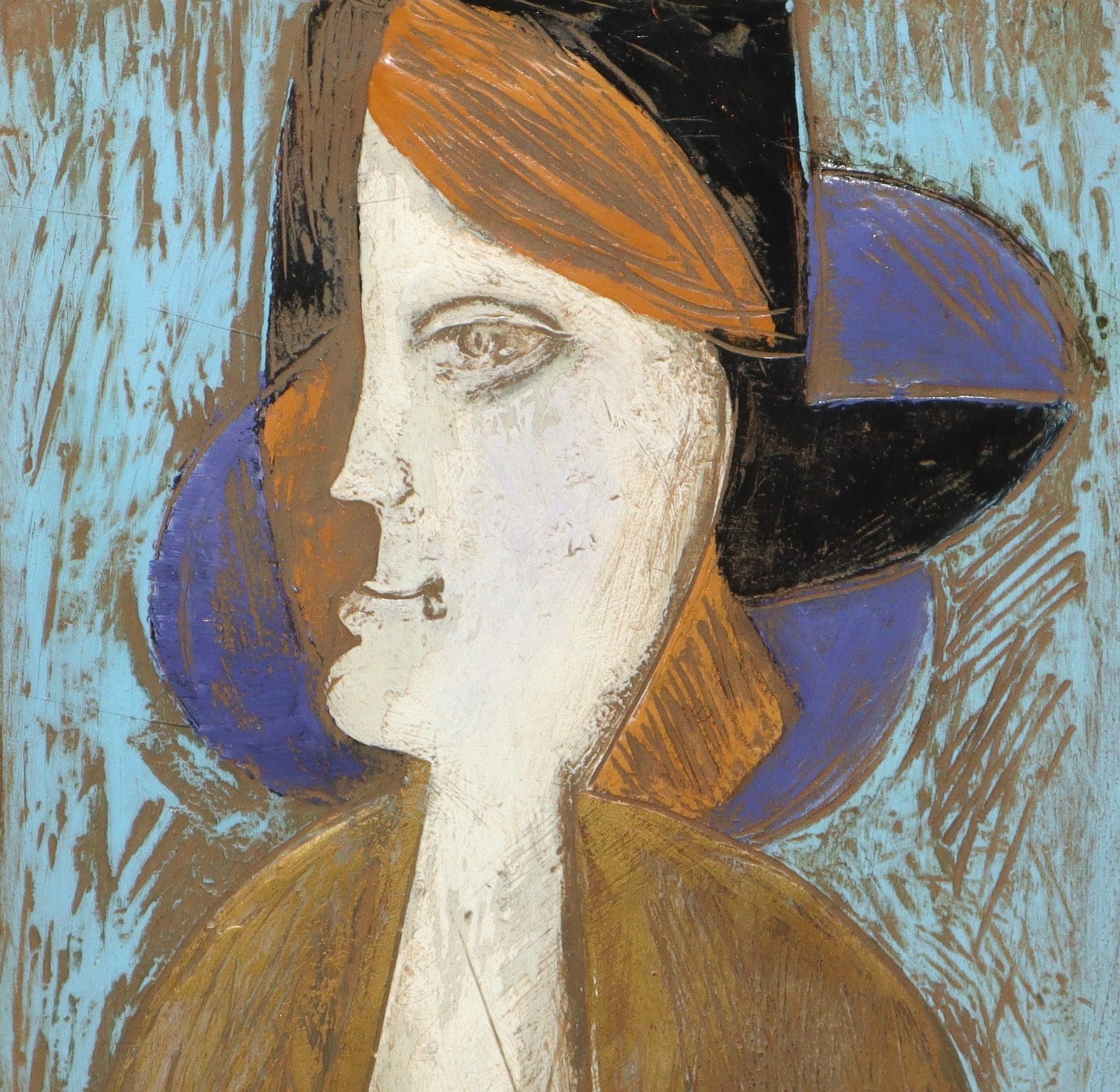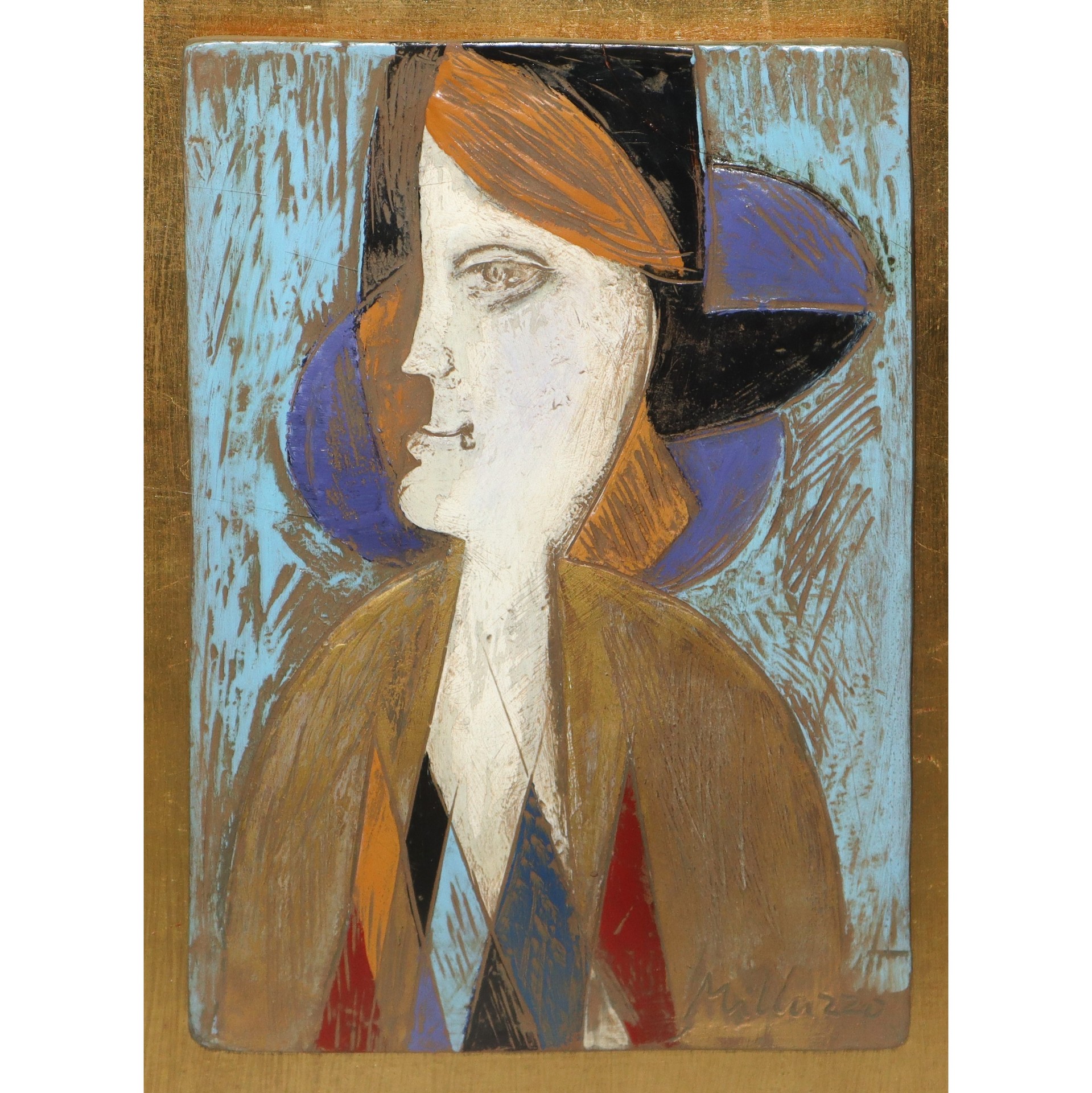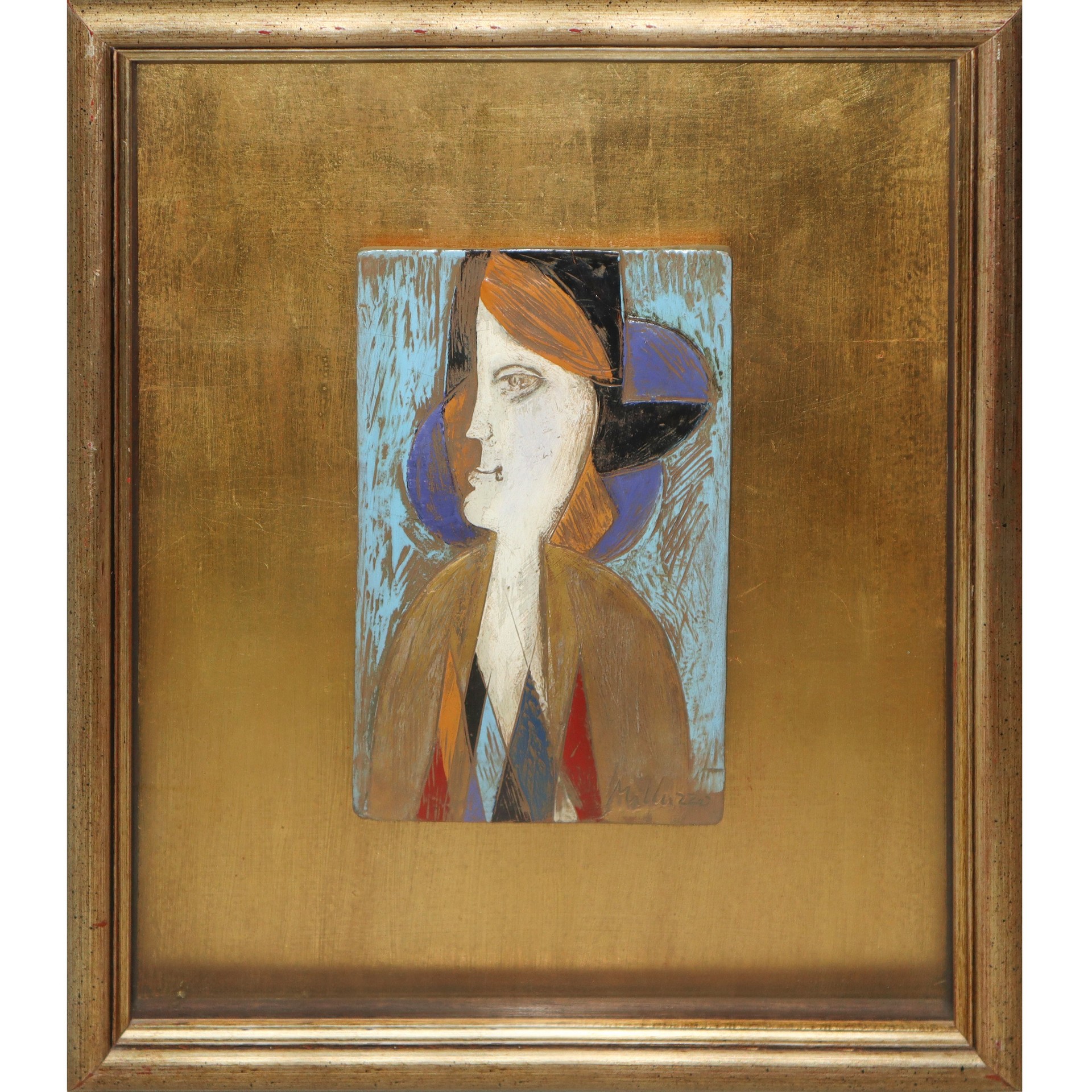 Sebastiano Milluzzo (Catania 1915 - Catania 2011) - Donna cm 28x18 in cornice 53x47 Smalto su tavola