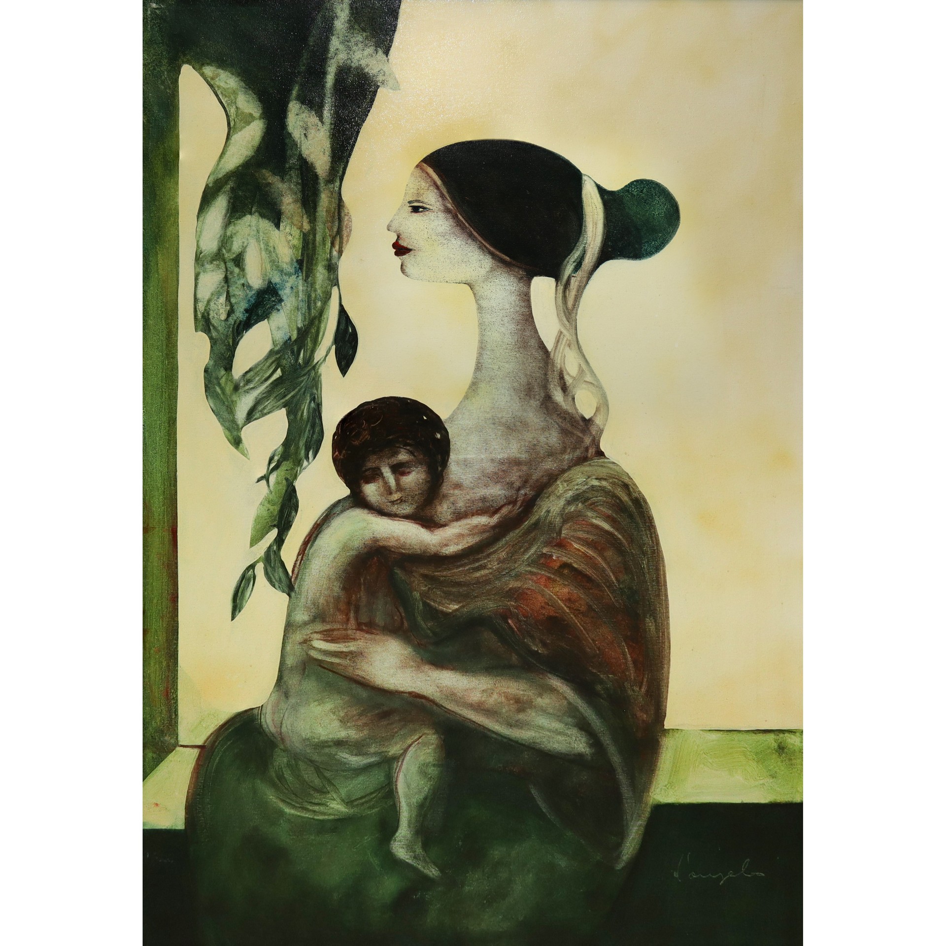 Cesare D'Angelo (Catania 1940 - 2006) - Maternità H CM 120x80 IN CORNICE H CM 132x92 olio su tela