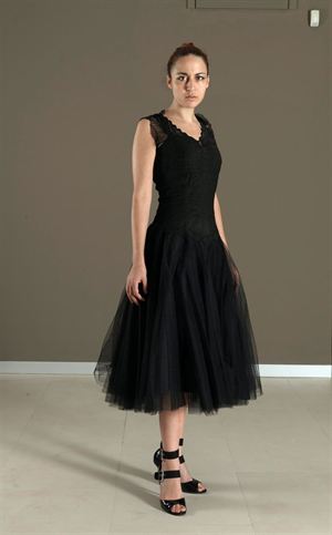 ABITO SARTORIALE Abito in tulle con pizzo nero di cotone, sottogonna a ruota,...