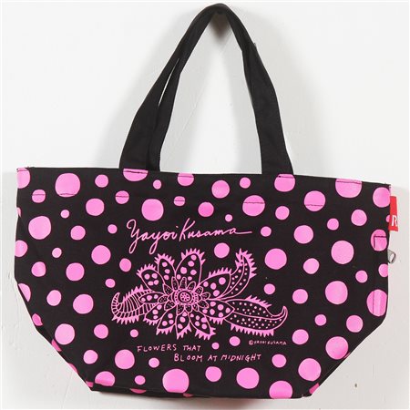 KUSAMA YAYOI (n. 1929) Bag. Flower that bloom at midnight. Acrilico. Cm 36,00 x 21,00 x 24,00. Firma a stampa e titolo al fronte.