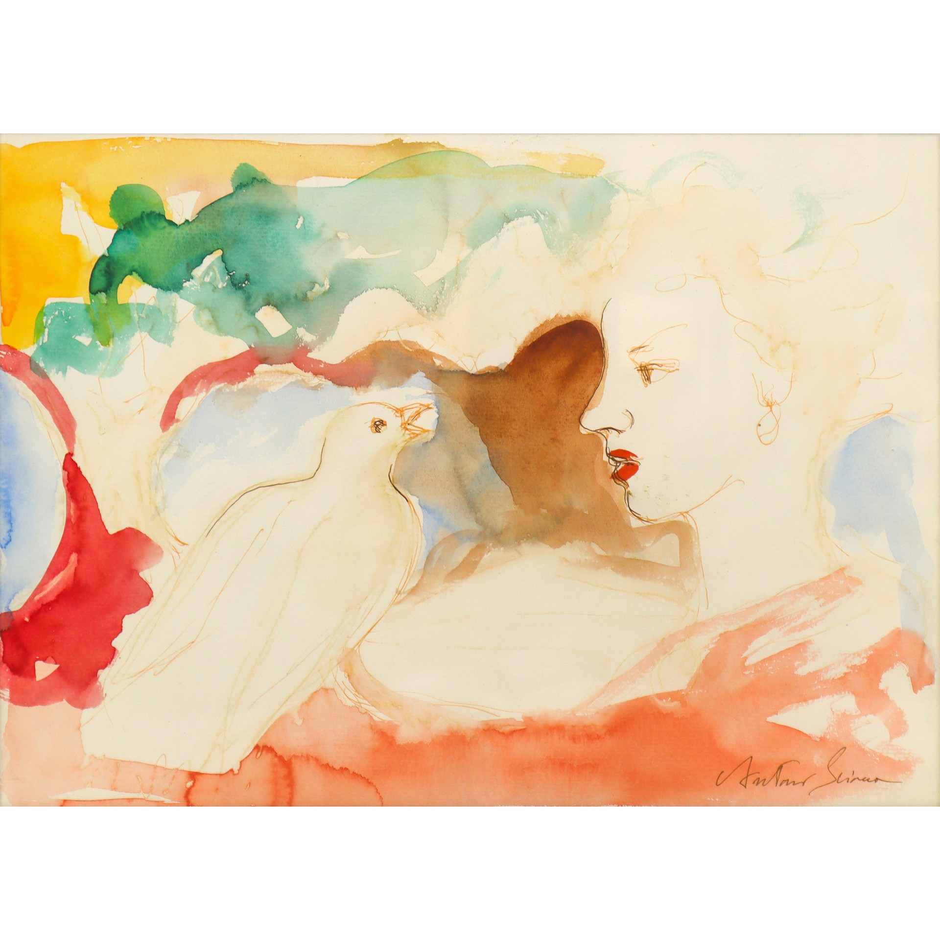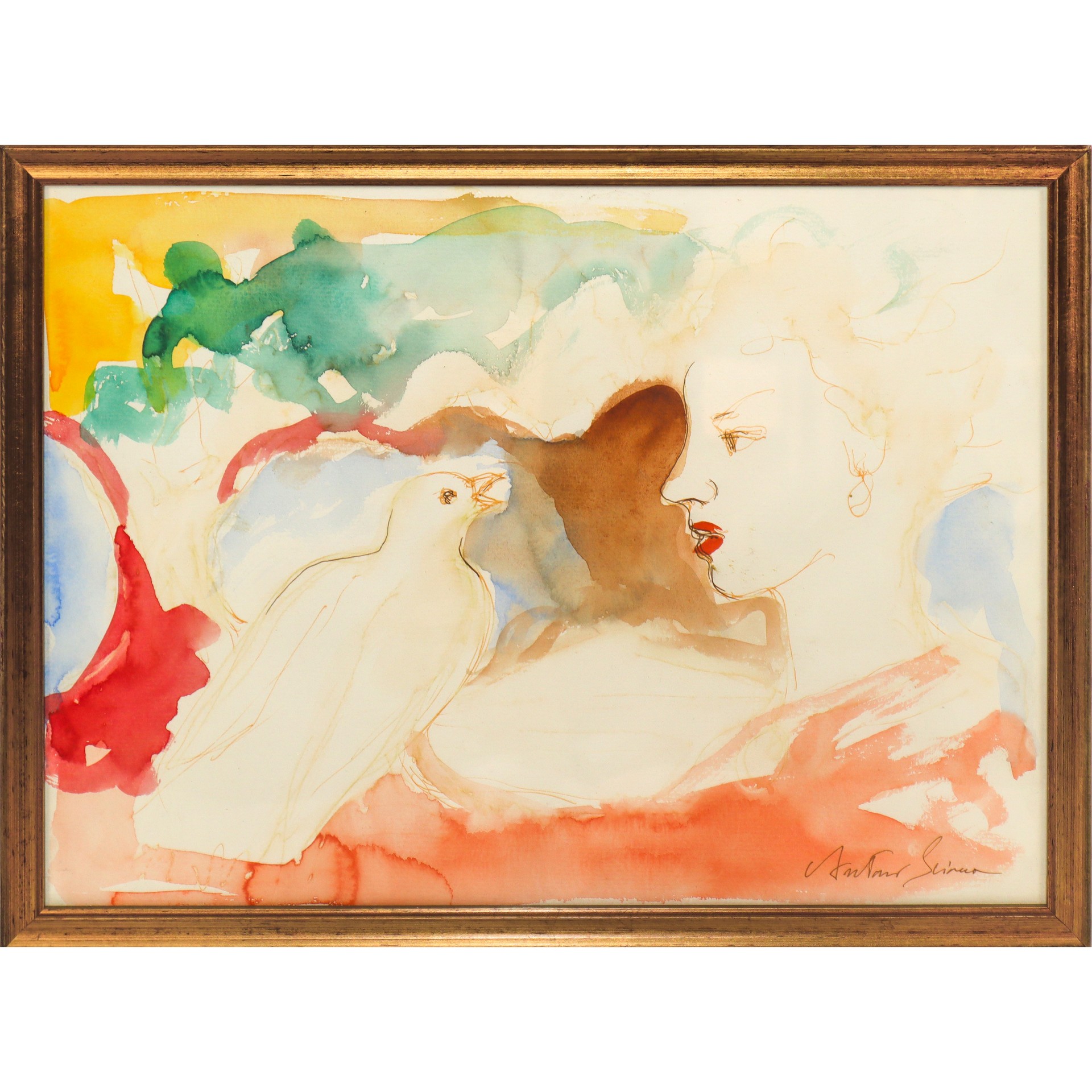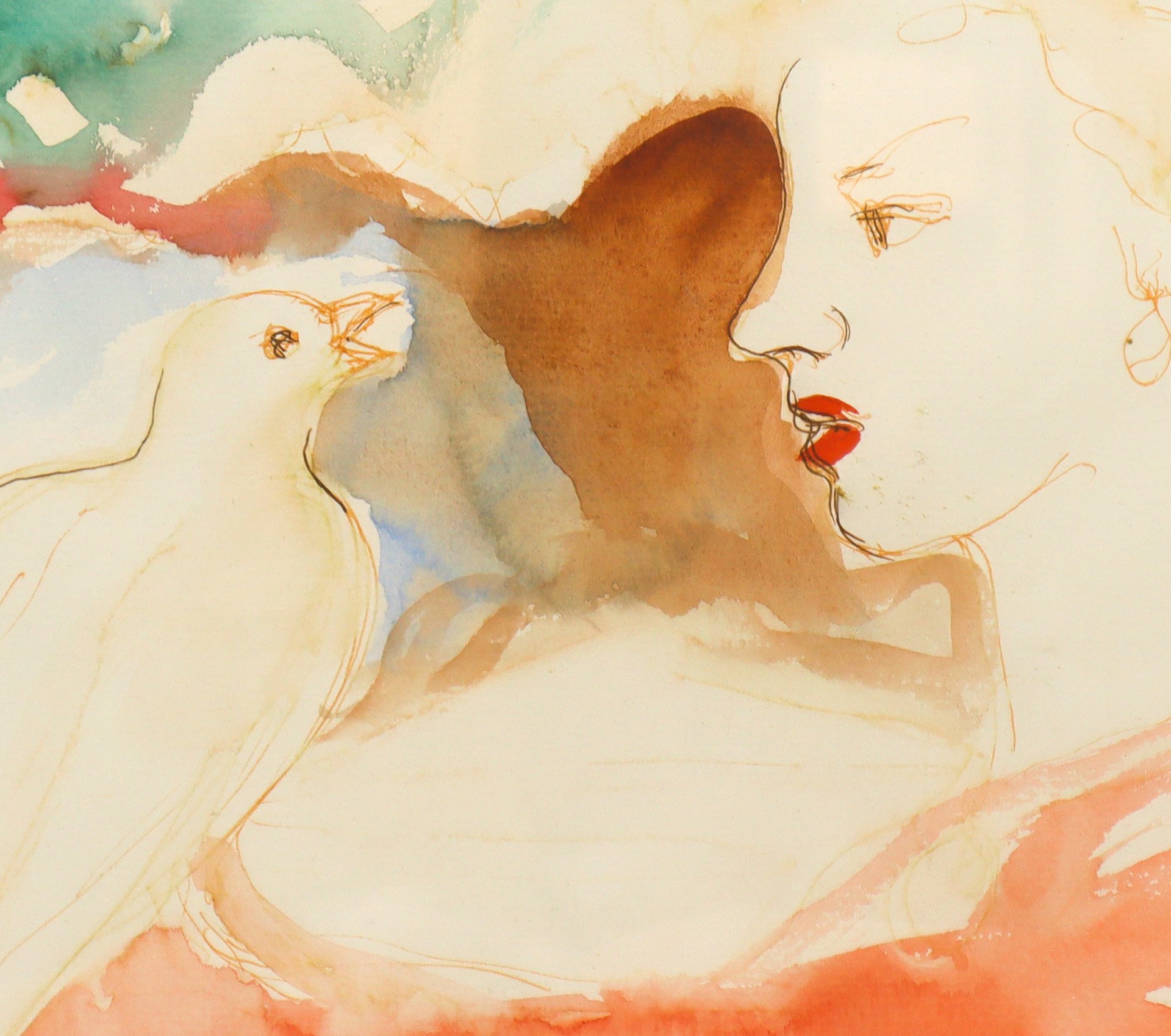 Antonio Sciacca (Catania 1957) - Volto di donna e una colomba 32 x 42,5 cm Acquerello
