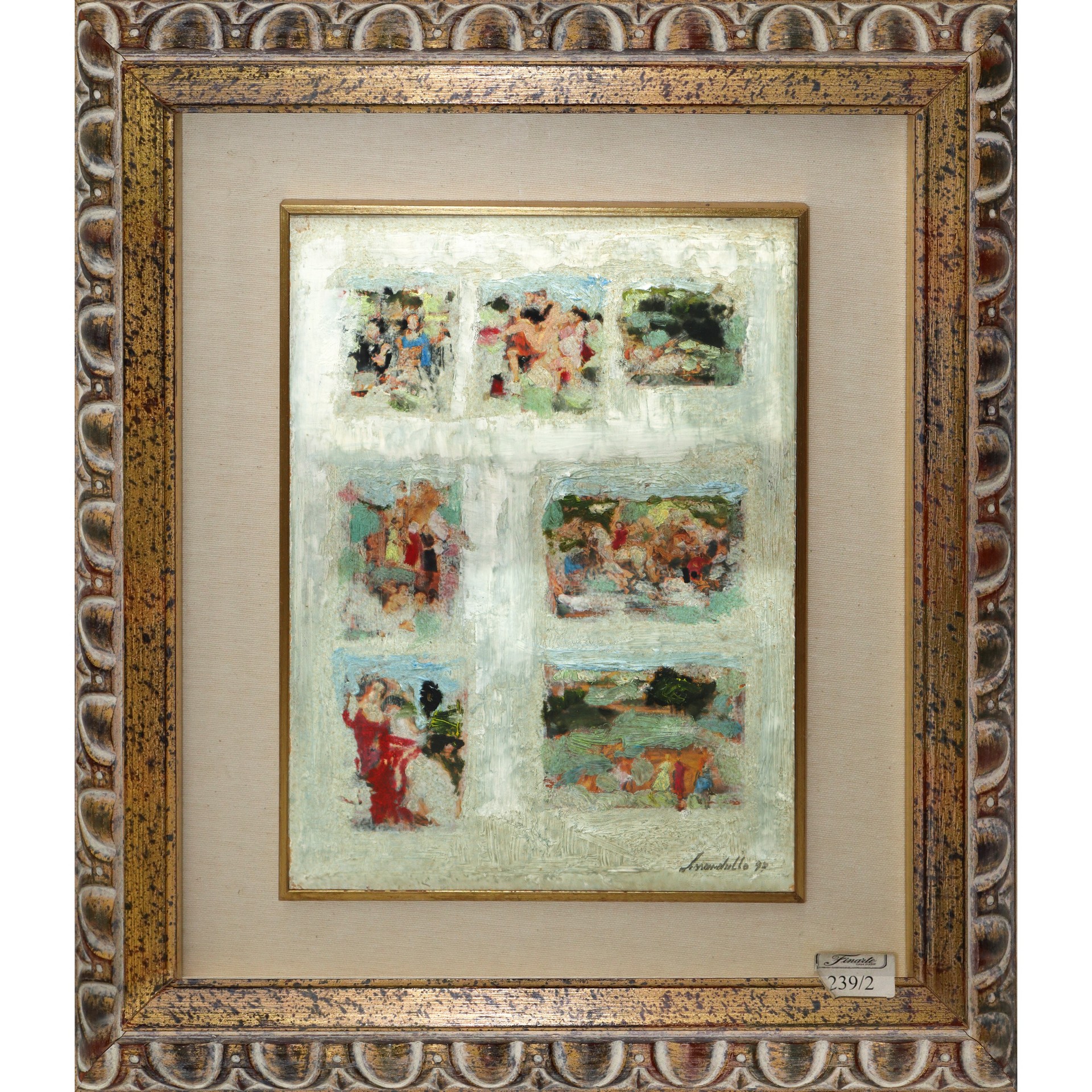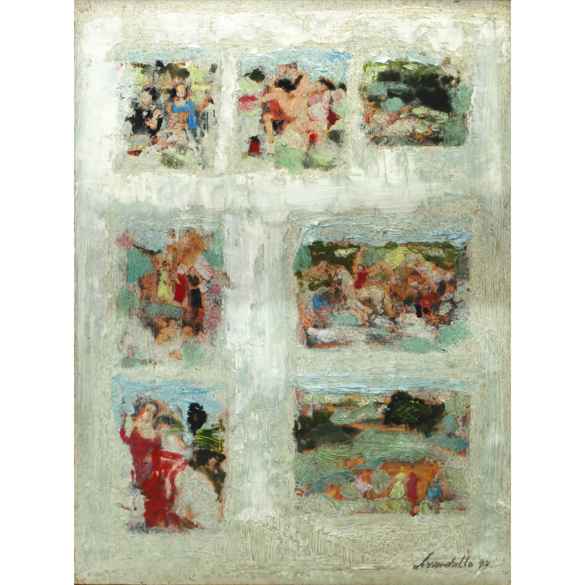 Giovanni Lissandrello (Ragusa 1942) - Composizione, 1997 H cm 33x24 - in cornice H cm 54x46 Olio su faesite