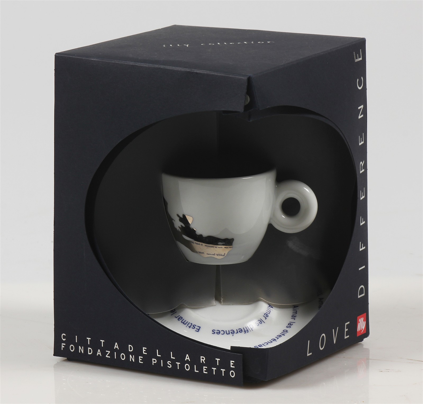PISTOLETTO MICHELANGELO (n. 1933) Tazzina da caffè. Porcellana. Cm 15,00 x 34,00 x 6,00. Illy Art Collection. Firmata e numerata. Confezione originale