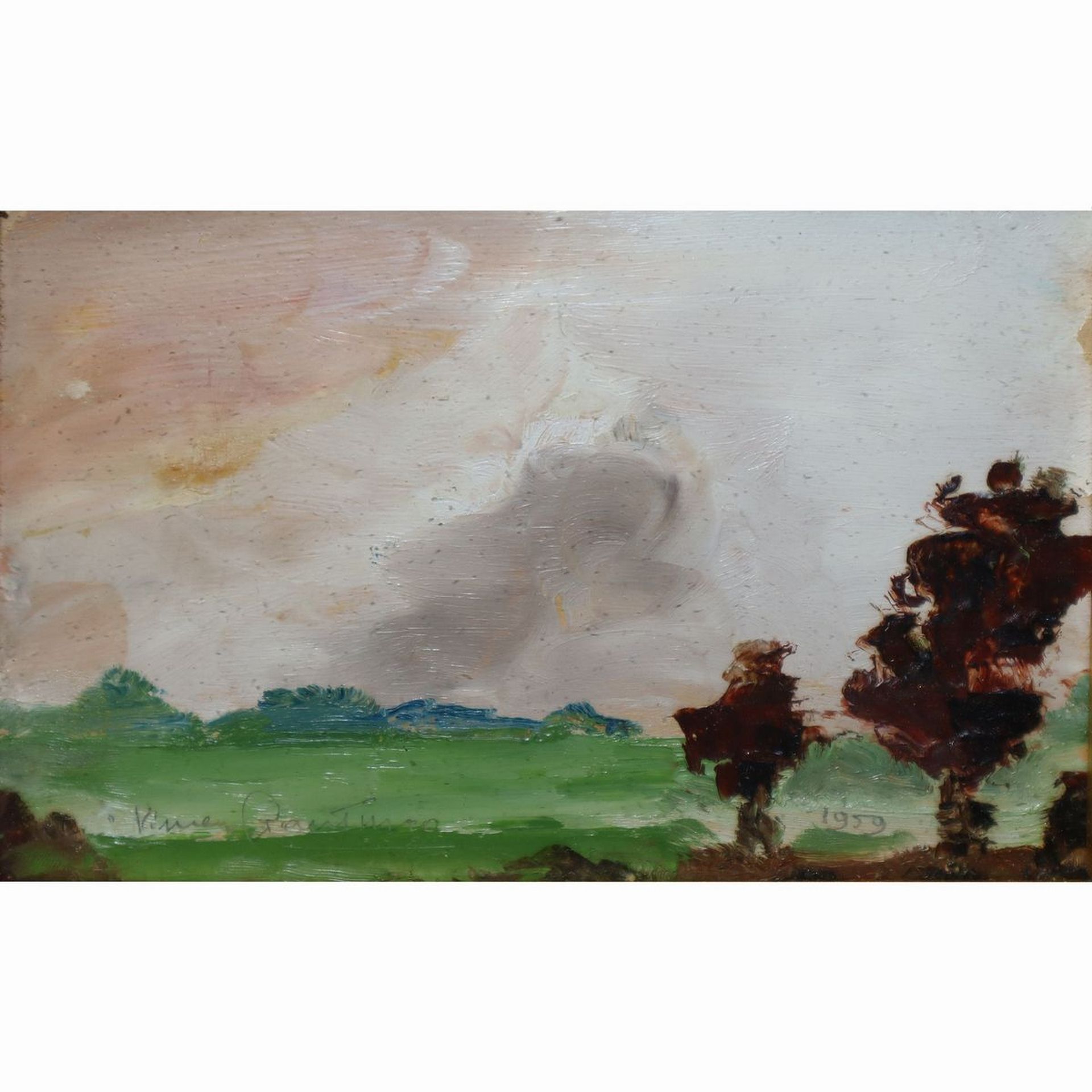 Autore anonimo del XX sec. - Paesaggio, 1959 Cm 10 x 15, in cornice cm 24 x 30 Olio su tavoletta