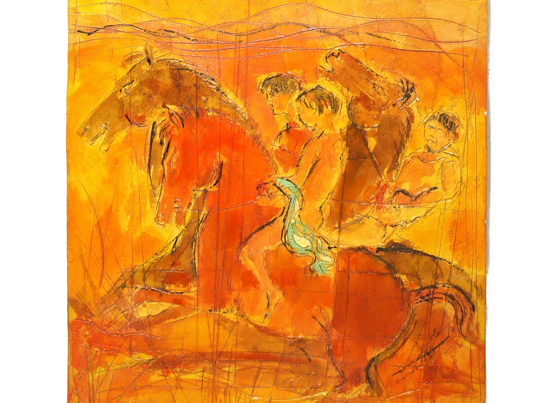 Cavalli ed elmo Cm 60x110 Tecnica mista su tavola con applicazione di ceramiche