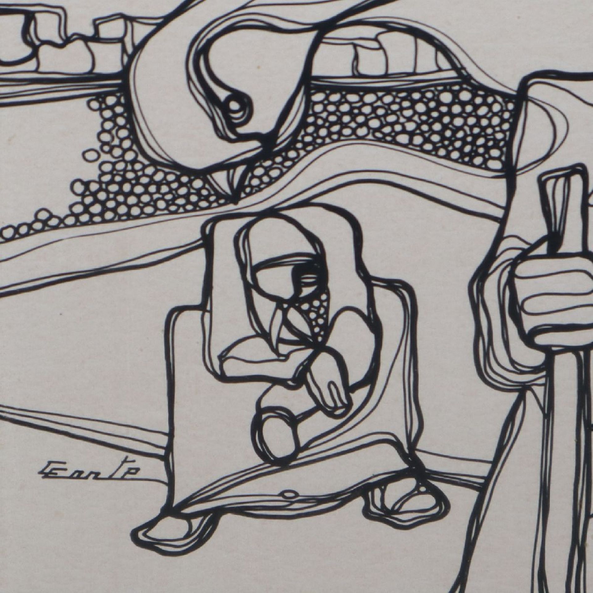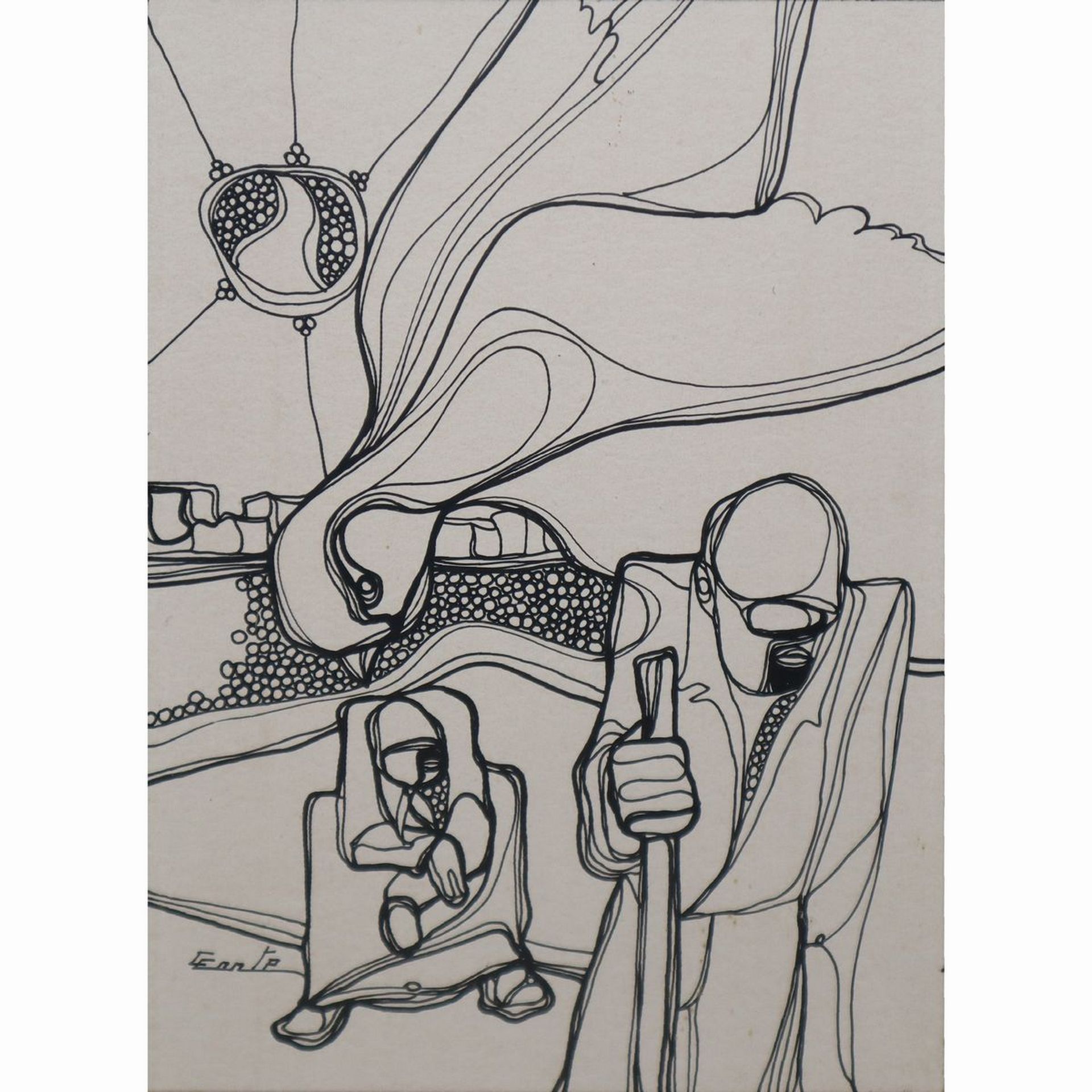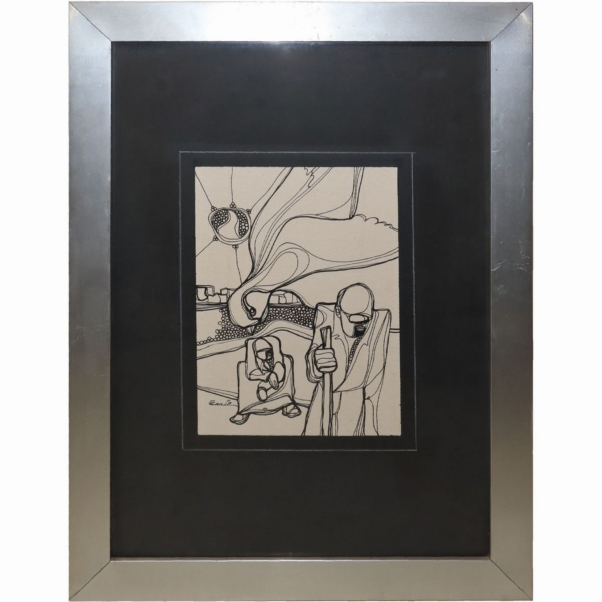 Carmelo Conte (Latiano 1946) - Personaggi Cm 24 x 18 , in cornice 53 x 40 Disegno su carta