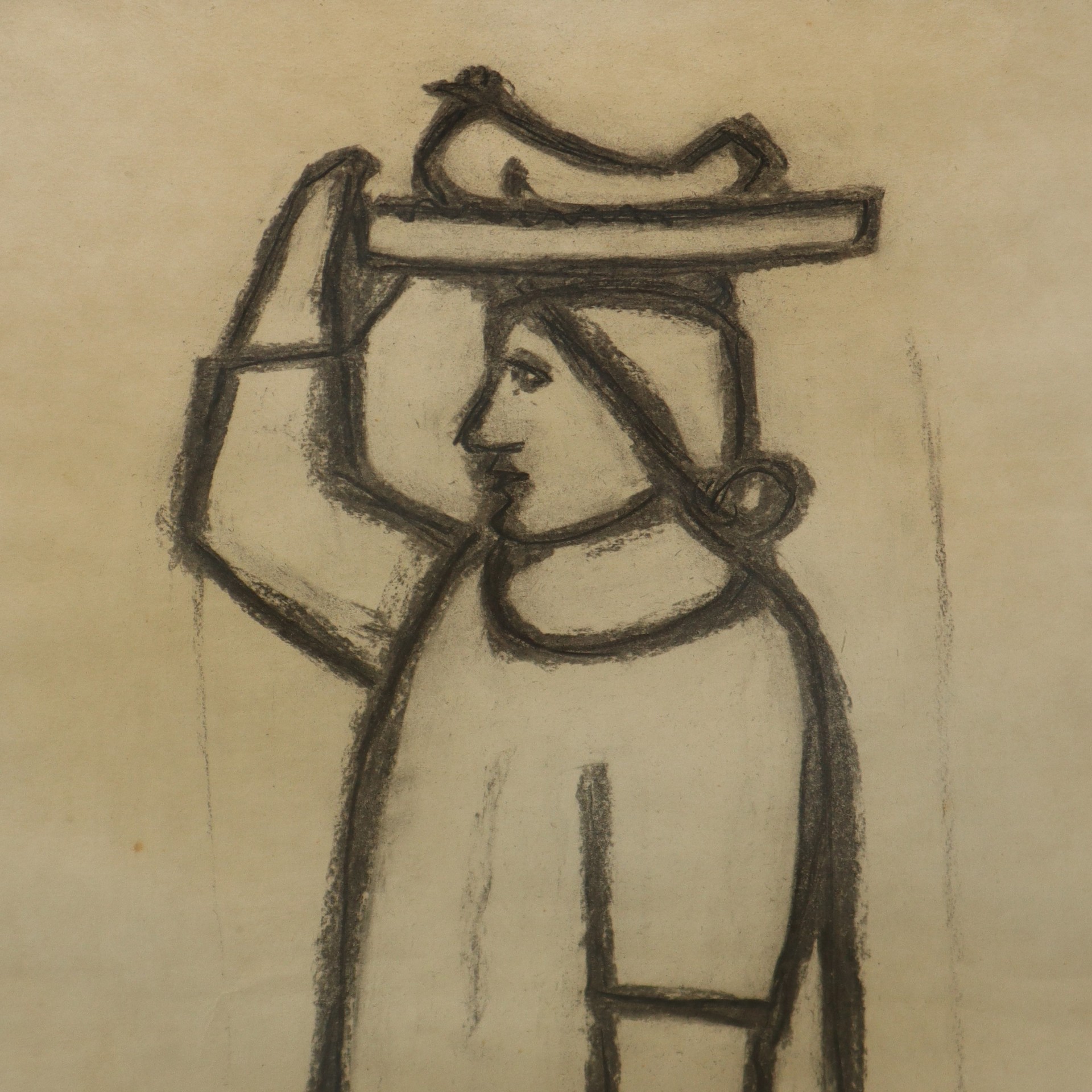 Donna con colomba, 1976 H cm 60x47,5 Tecnica mista su cartoncino