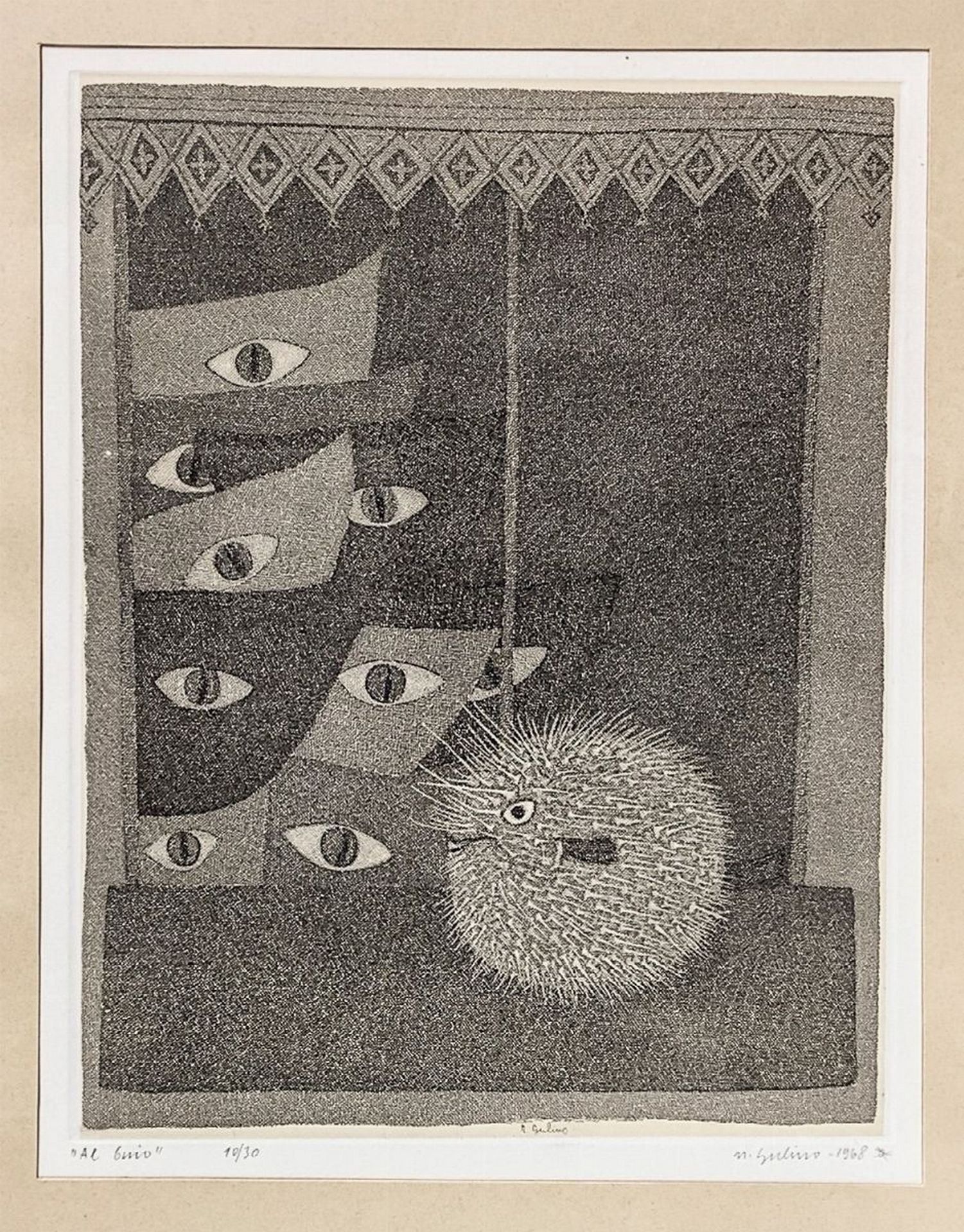Nunzio Gulino (Comiso 1920 - Roma 2011) - Al buio cm 31,5x14,5, in cornice 58x46 Incisione