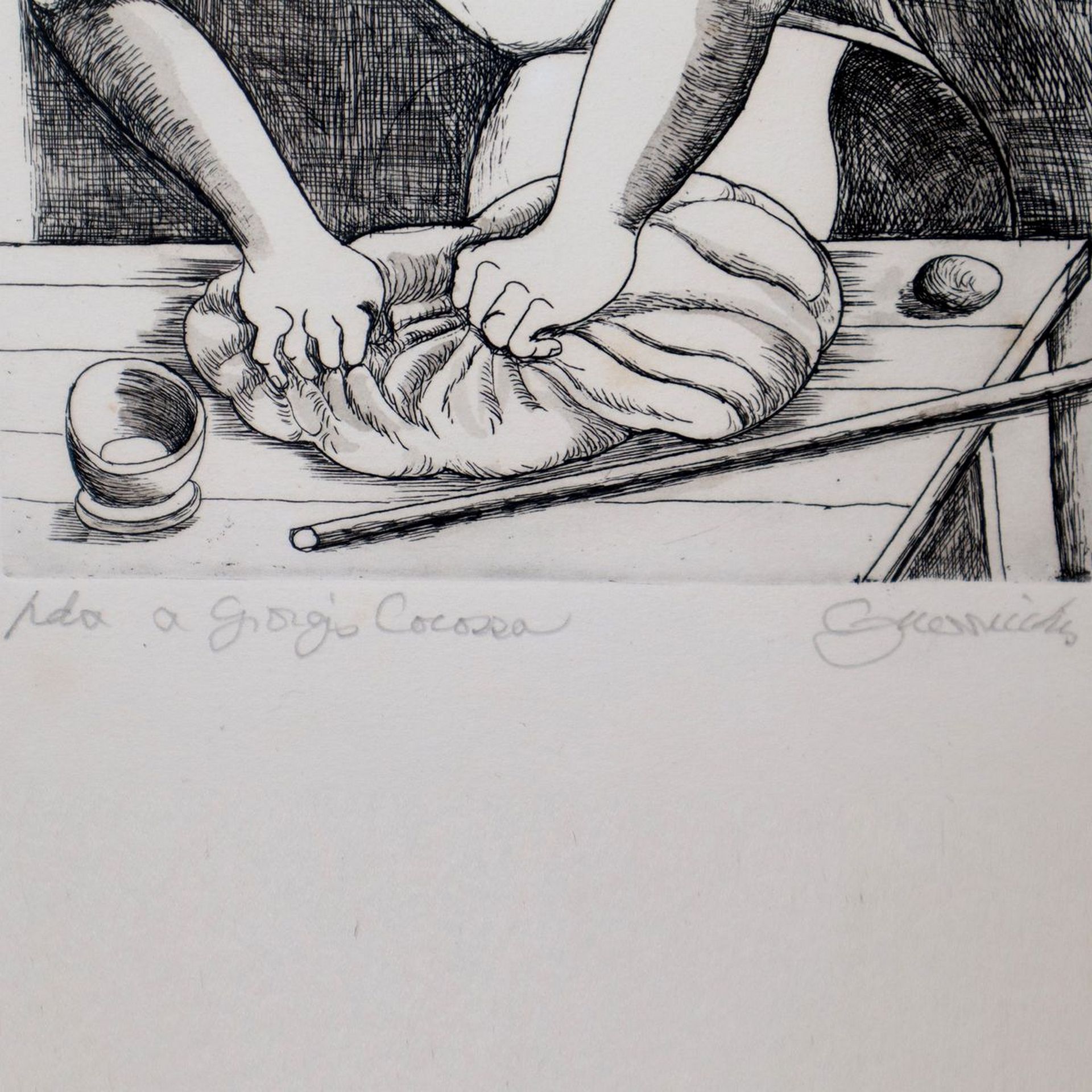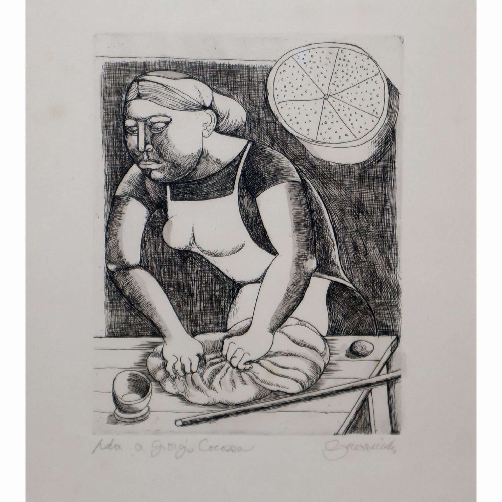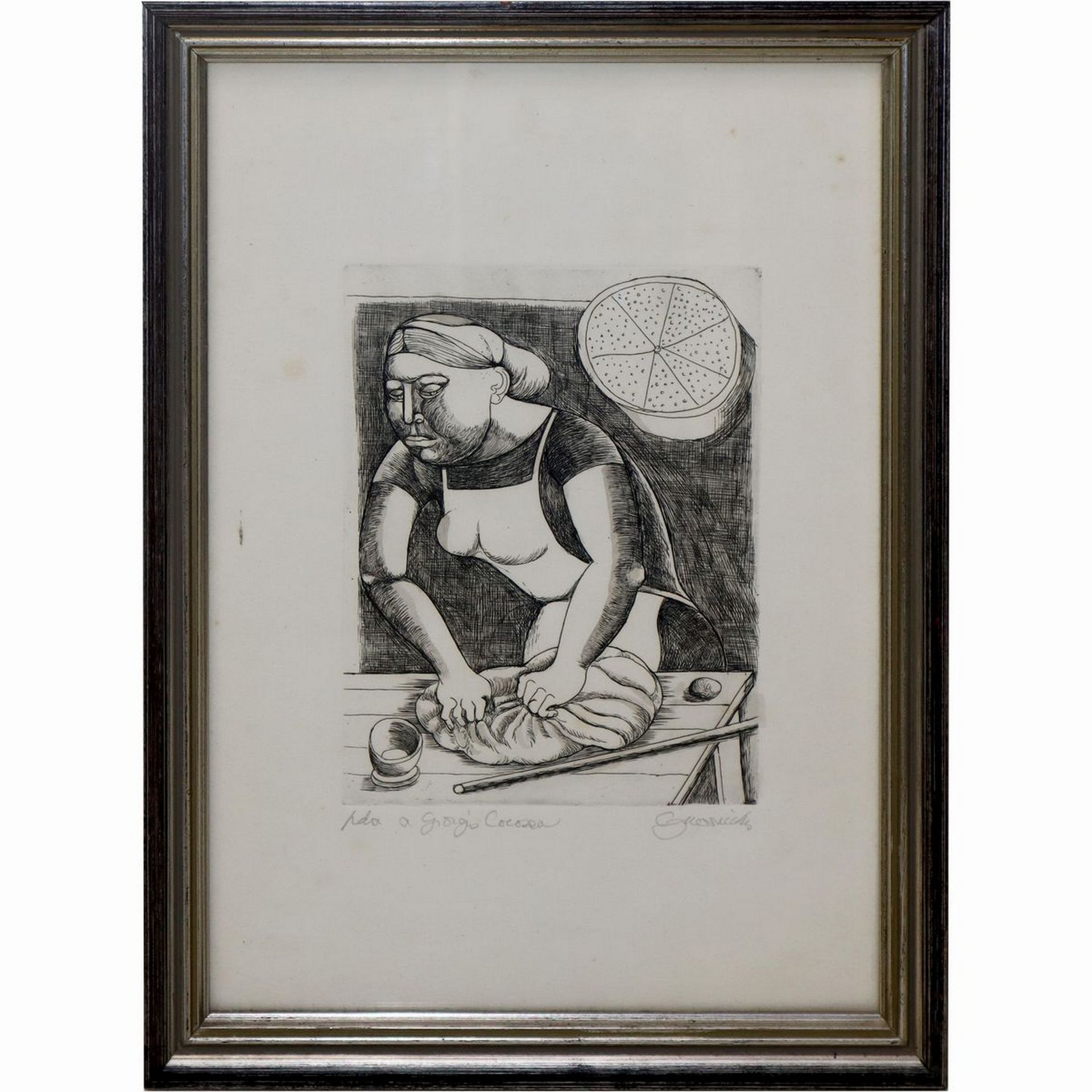 Luigi Guerricchio (Matera 1932 - 1996) - Donna che impasta la farina Cm 33 x 24, in cornice cm 38 x 28 Serigrafia su carta