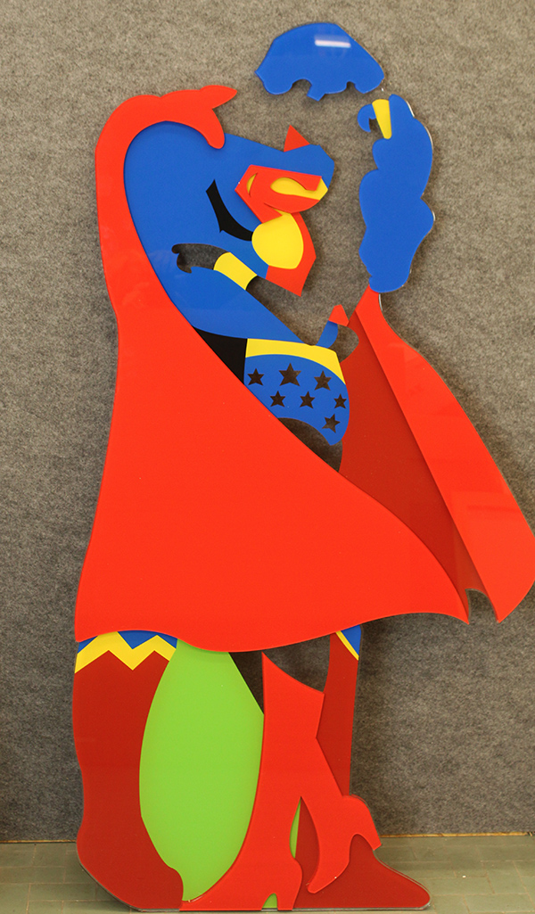 MARCO LODOLA, "Intestellar Kiss", anni 2000, serigrafia su plexiglass a 20 passaggi di colori, cm 130x67x1, 5 kg. Al verso: firma e tiratura 7/50. Opera pubblicata su Edizione Arte Pentagono di Marco Lodola pag 2 a sinistra. L'opera non necessita cornice.