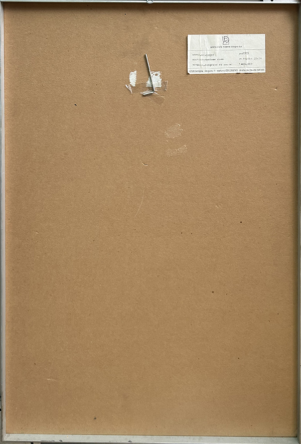 RICCARDO GUARNERI, "Intonazione rosa", 1975, tecnica mista su cartoncino, cm 50x35. Al fronte: titolo, anno e firma. Al verso: etichetta Galleria d'arte moderna Bologna due. Opera accompagnata da autentica su foto dell'artista. Opera con cornice