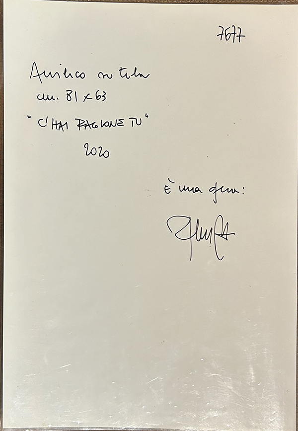 ROBERTO MINIATI, "C'hai ragione tu", 2020, acrilico su tela, cm 81x63. Al verso: firma, anno e titolo. Opera accompagnata da autentica su foto dell'artista. Opera con cornice