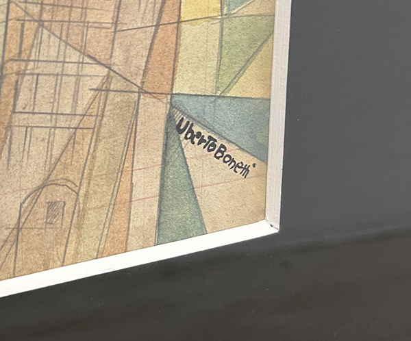 UBERTO BONETTI, "Parma", anni '30, acquerello e tecnica mista su carta, cm 20x30, con cornice 63x53. Al fronte: firma in basso a destra. Opera pubblicata nel Catalogo "Anni '30, l'Italia nelle aeroviste". Opera con cornice