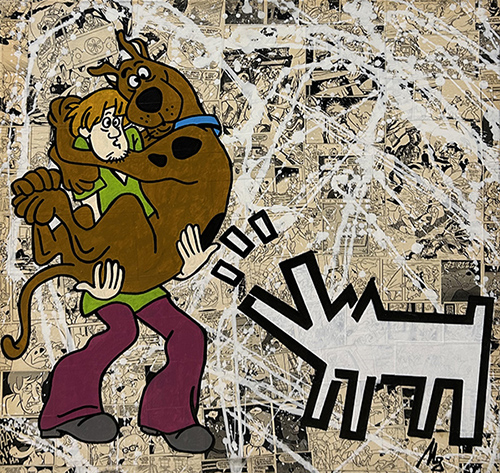 STEFANO MURA, "What is different makes you scared", anni 2000, tecnica mista su tela, cm 60x60. Al verso: titolo, firma, anno. Opera senza cornice