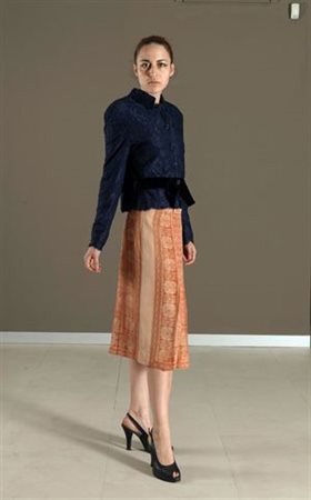ELSA SCHIAPARELLI Rarissima gonna al ginocchio di seta a pieghe di color...