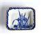 Piattino in porcellana dipinta in blu sottocoperta con pianta di iris fiorita sul fondo.