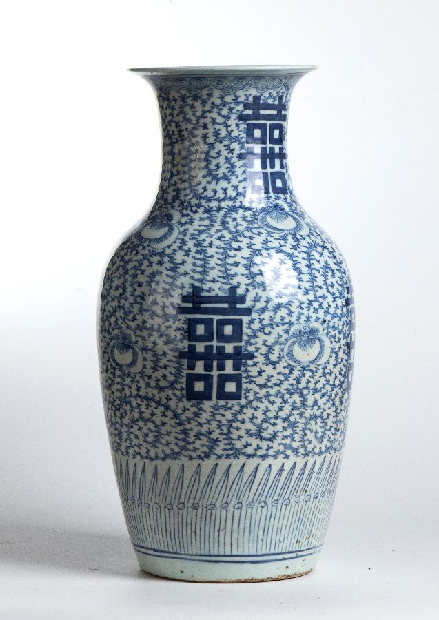 Vaso a balaustro dipinto in blu Cina, dinastia Qing, Repubblica (1910 ca.). Porcellana Alt. 45 cm