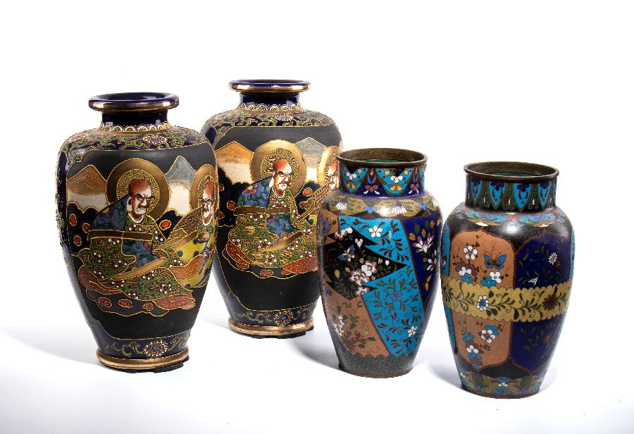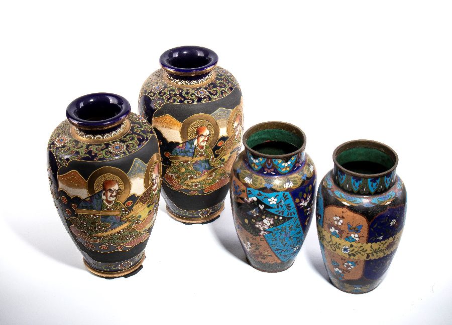 Loto di due coppia di vasi cloisonné Satsuma di varie misure.