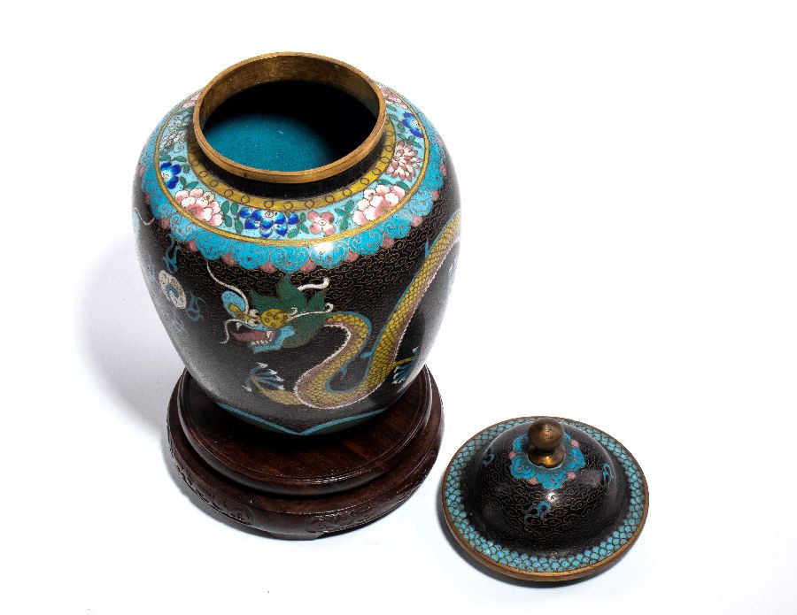 Vaso cloisonné con coperchio, Cina Inizio XX secolo Alt.21cm