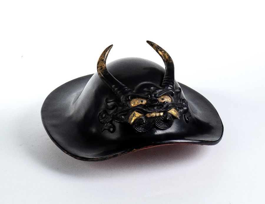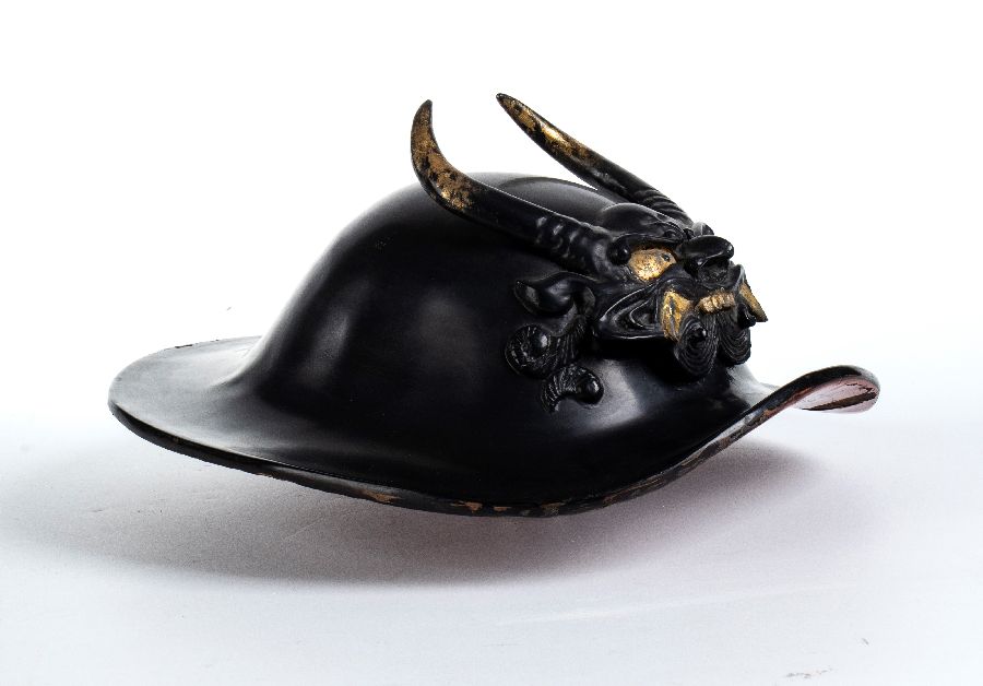 Elmetto jingasa Giappone, periodo Edo (1603-1868). Alt. 25 cm; Lung. 34 cm