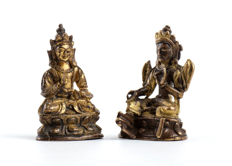 Lotto di due piccole figure di divinità Buddista, Cina Inizio XX secolo Alt.4cm