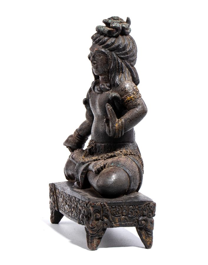 Figura di divinità buddista in legno.