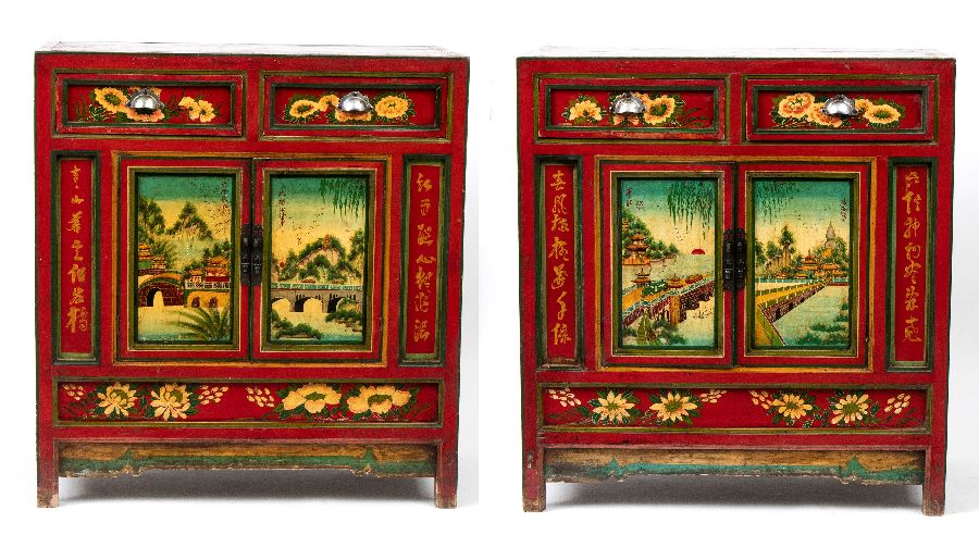 Rara coppia di mobili di design cinesi Cina, Mongolia interna, Rivoluzione Culturale. Alt. 100 cm; Lung. 94 cm; Larg. 50 cm