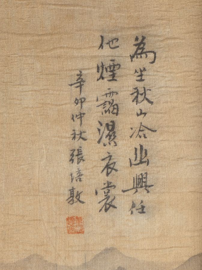 Lot 157 | Bel dipinto cinese con paesaggio e calligrafia, Cina dinastia Qing, XVIII secolo Alt.91cmX45cm