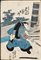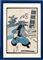 Xilografia di Utagawa Kunisada (Toyokuni III) raffigurante un attore kabuki, nel ruolo di un samurai, in una posa dinamica come se stesse per squadrare una spada.
