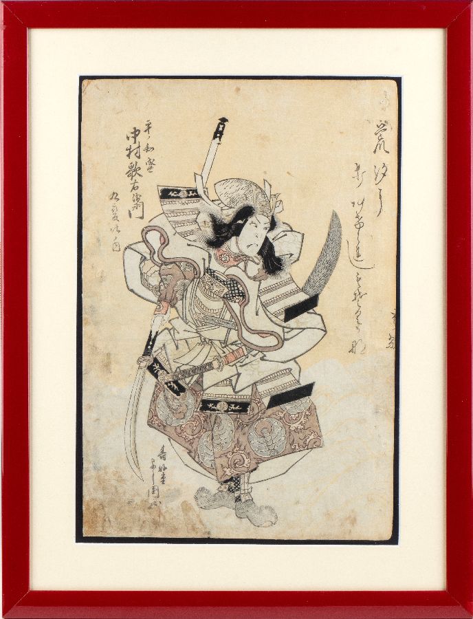 Xilografia nello stile ukiyoe raffigurante l'attore Kabuki , Nakamura Utaemon III.