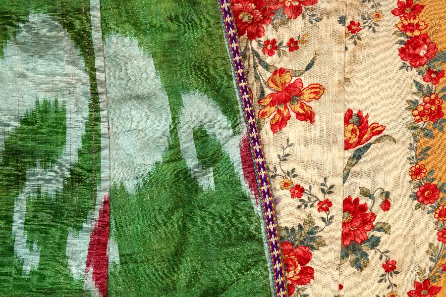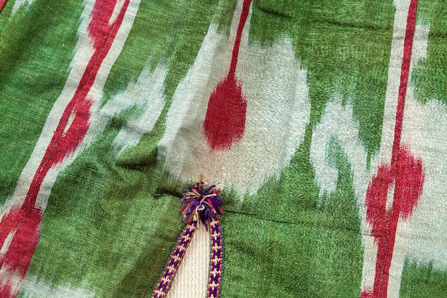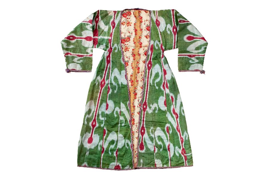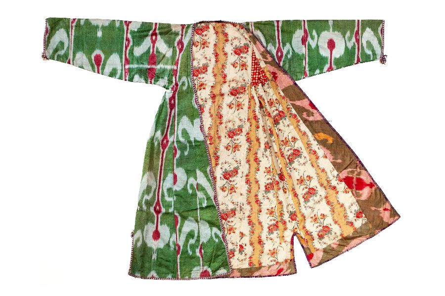 Lot 202 | Abito Uzbeko "Chapan" Prima metà XX sec. Tessuto in seta con tecnica "Ikat" 170cmX130cm