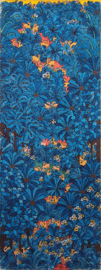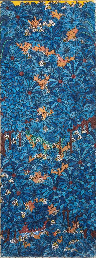 KETUT TAGEN, "Penestanan Klod Ubud Bali" Acrilico su tela Lung.69cm; Alt.240cm