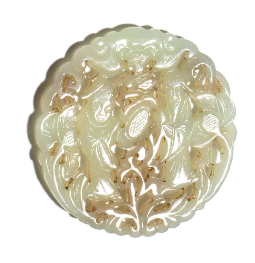 Ornamento pendente in giada, Cina dinastia Qing, XIX secolo Diam. 5,5 cm