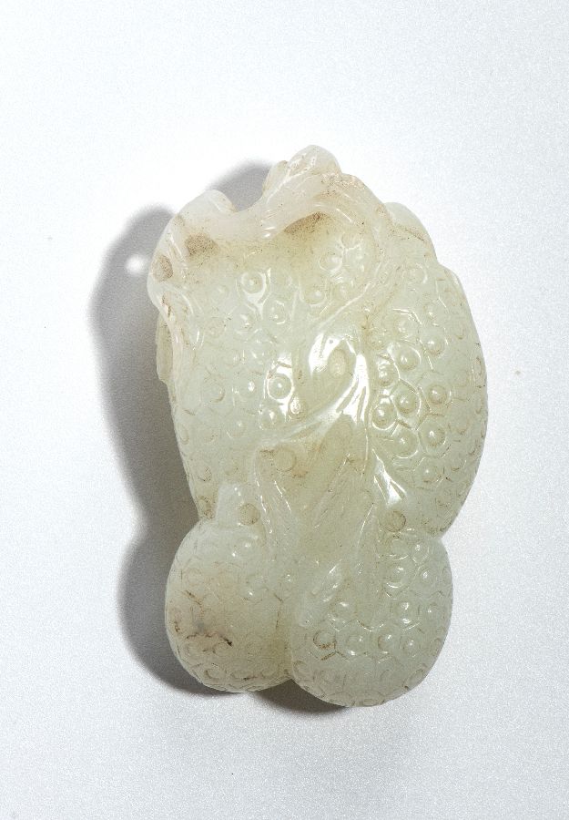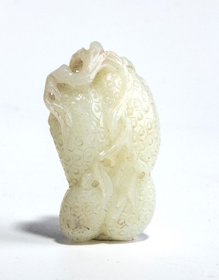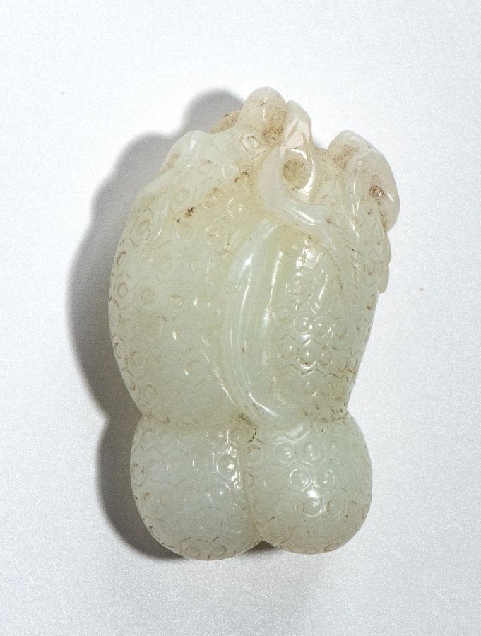 Oggetto in giada, con raffinata lavorazione, a forma di arachide che simboleggia la prosperità della famiglia.