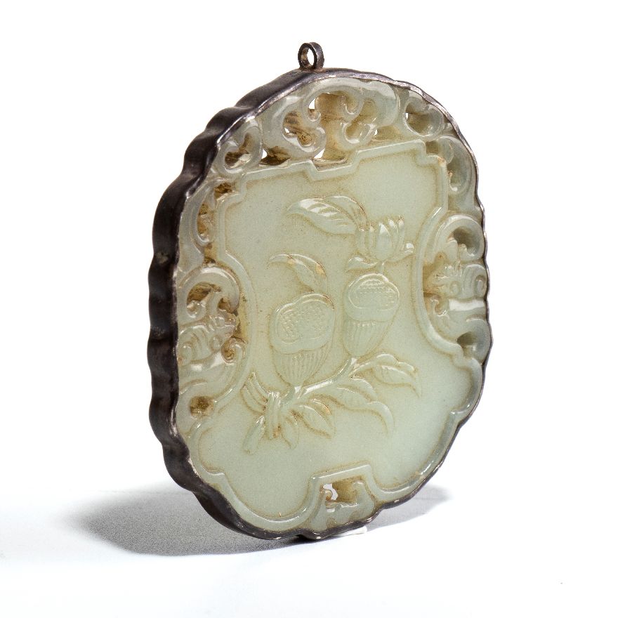 Placchetta in giada lavorato a traforo, Cina fine dinastia Qing-periodo Repubblica (1912-1949) Alt.6cmX5cm